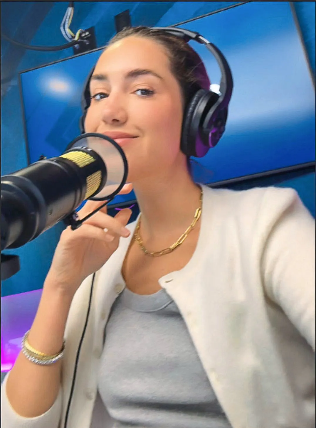 As Tinx grabs her beverage, she heads to the studio to record a new episode of her podcast, “It’s Me Tinx,” which is available to stream on SiriusXM’s Radio Andy station. After her time in the sound booth, Tinx trades one studio for another.