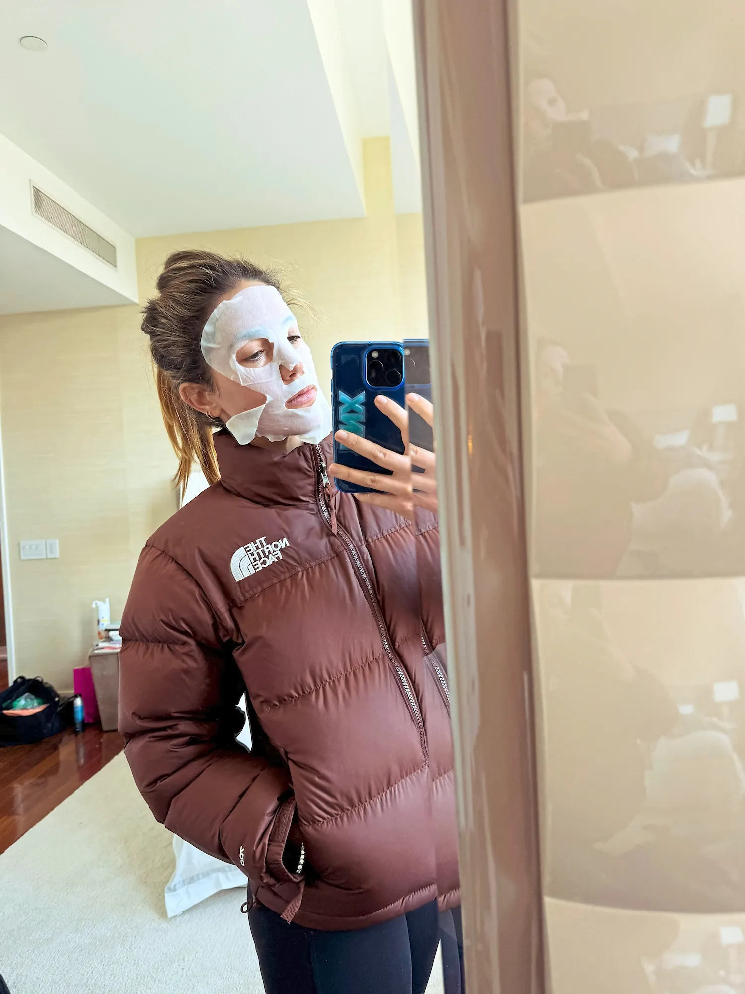 “| nearly walked out of the house with this sheet mask on [my face],” the influencer, 33, exclusively shares while recapping her typical routine — which begins with some hydrating skincare products — in the latest issue of Luxury Handbag Shopping. “I didn’t want to scare the people of New York City, so I took it off, although they wouldn’t be fazed!”