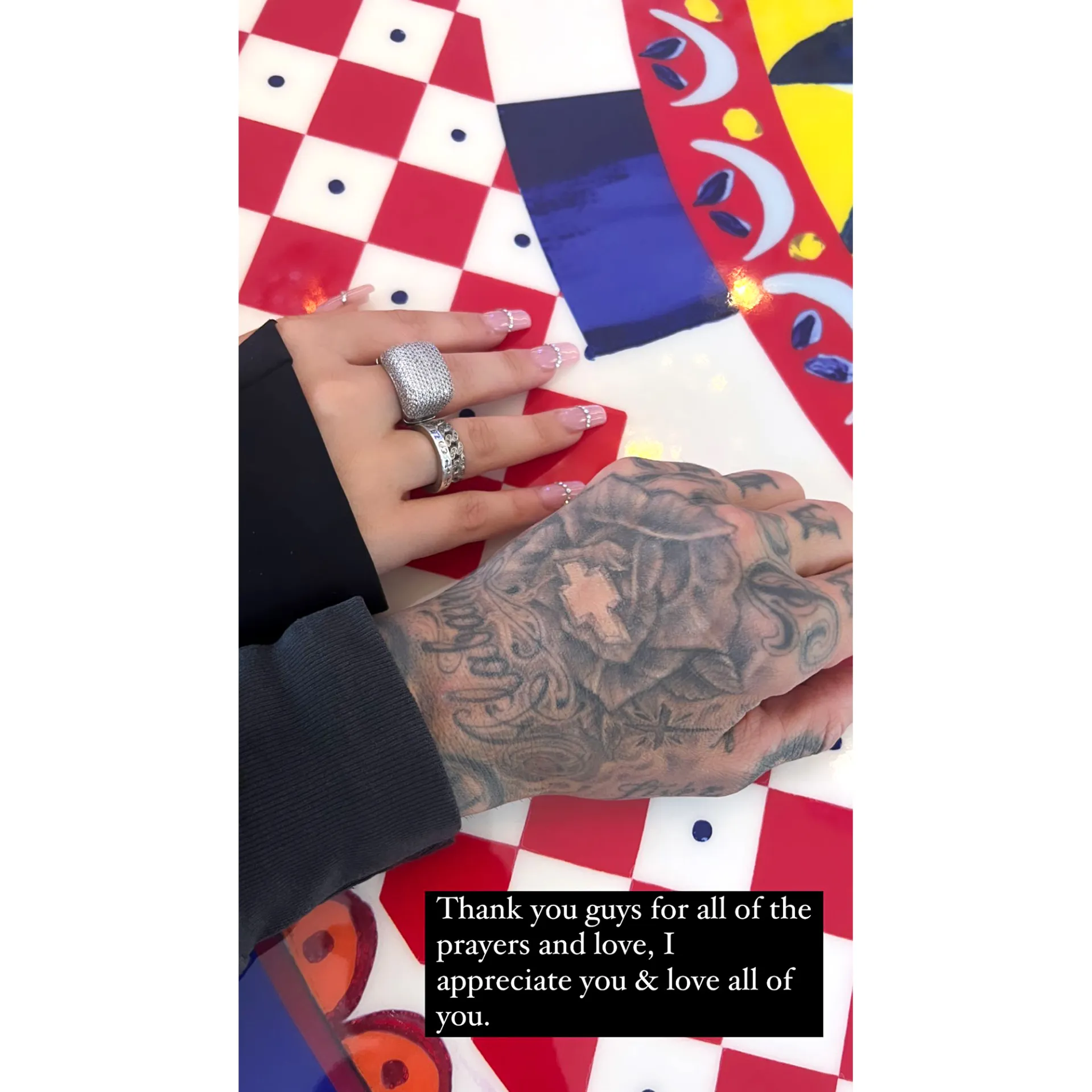 “Thank you guys for all the prayers and love, I appreciate you & love all of you,” the 16-year-old influencer wrote via Instagram Story on Wednesday, sharing a photo of her hand next to her dad’s.