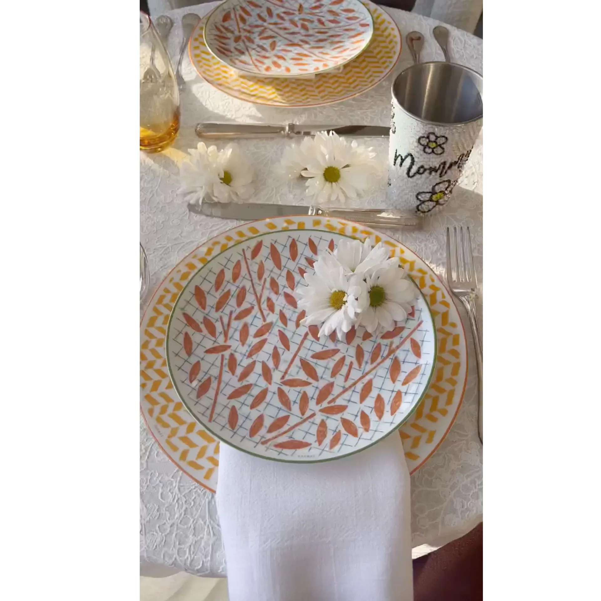 In addition to filling her home with flowers and candles, Scott also had the table set with custom, bedazzled cups, with one bearing the phrase “Mommy,” which perfectly matched the bouquets of daisies. “[I] can’t get over this,” the Life of Kylie alum wrote, alongside a prayer-hands emoji and two white hearts.