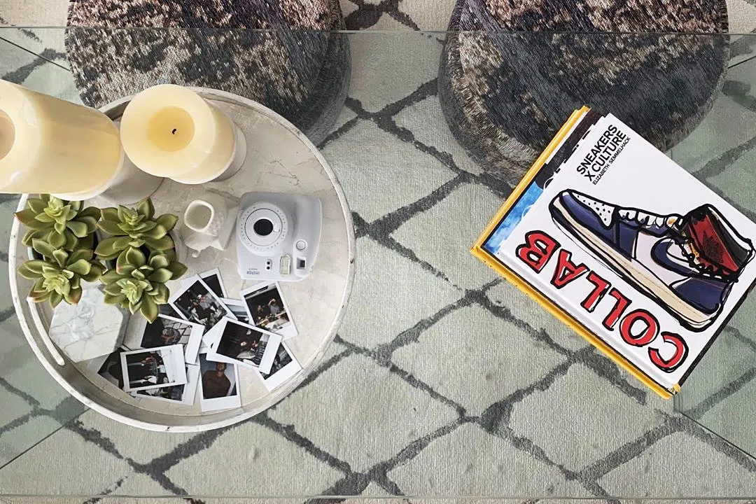 The Florida native also showed off his extensive book collection, decanters of alcohol by the floor-to-ceiling windows and polaroid picture collection — which sit next to a group of succulents and marble coasters.