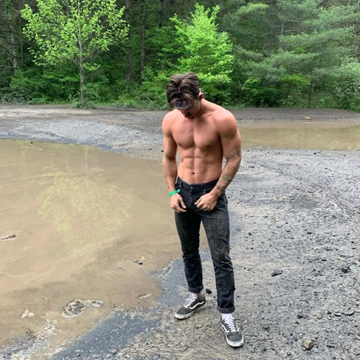 “Finding my own way,” he captioned the photos that showed him wearing black jeans, gray sneakers and a headband as he stood beside a creek on the Hatfield-McCoy Trails in Williamson, West Virginia.