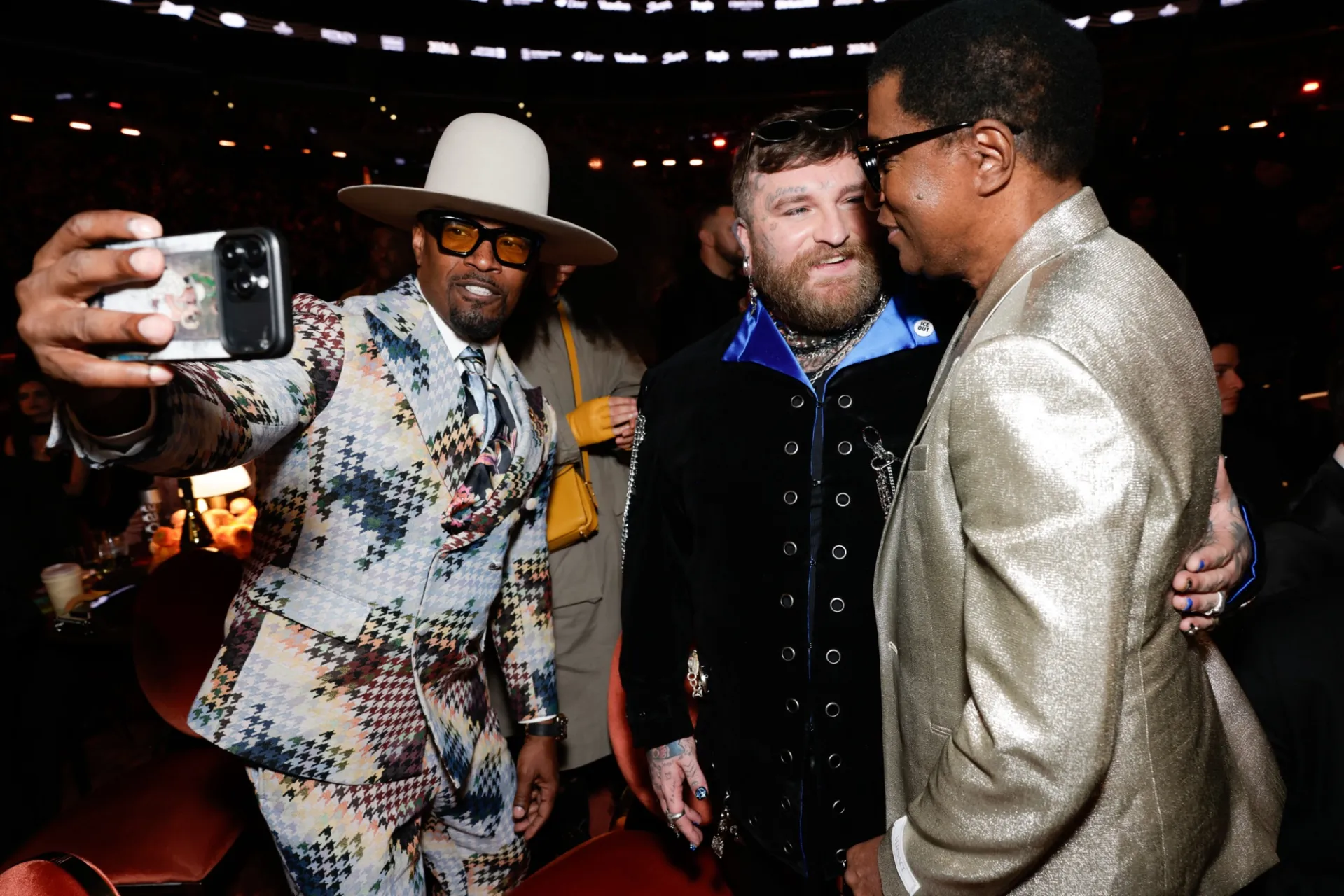 Between all the action on stage, Bad Bunny, Eilish and others posed for selfies with pals in the audience, while tender moments were shared between couples like Lady Gaga and fiancé Michael Polansky.