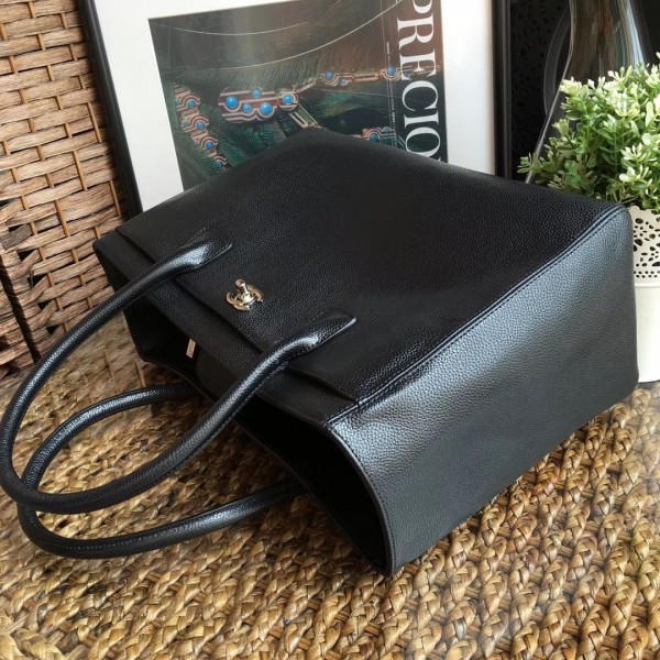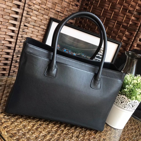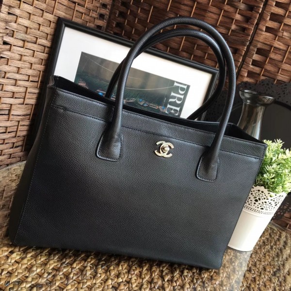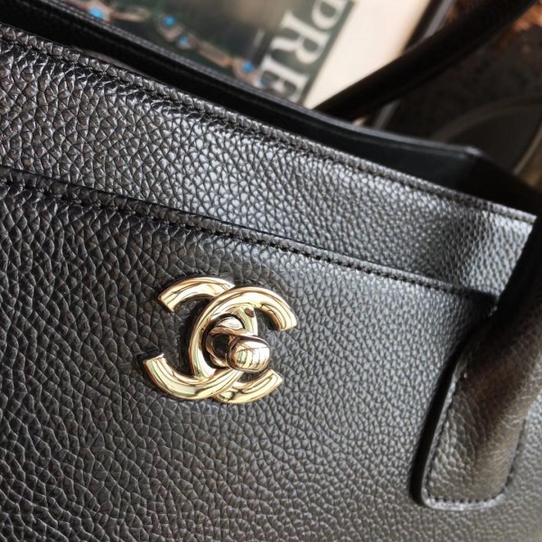 chanel cerf tote bag in caviar leather black with silver hardware AQ04098