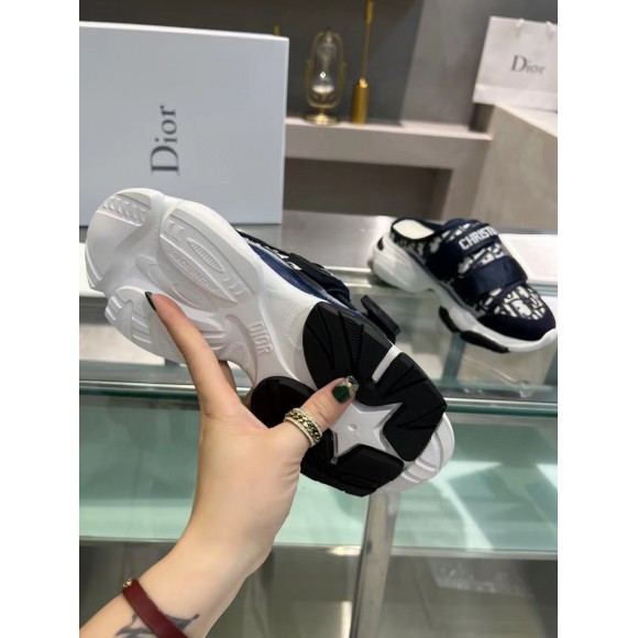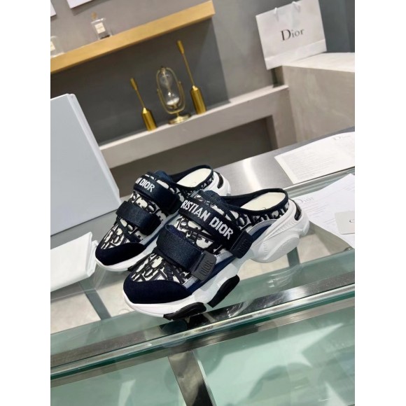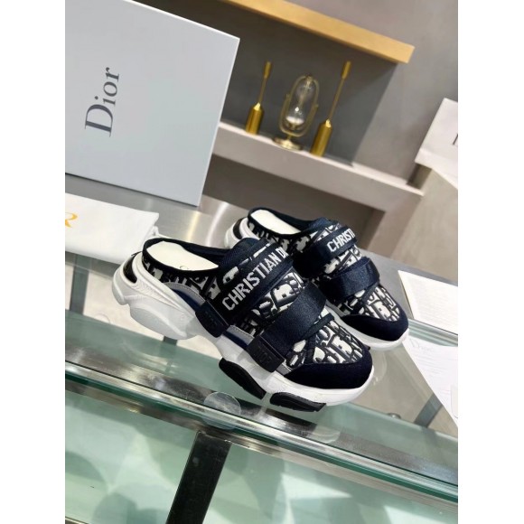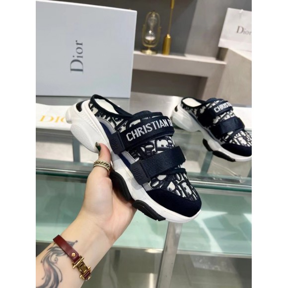 Dior D-Wander Open Back Sneakers In Blue Oblique Fabric
