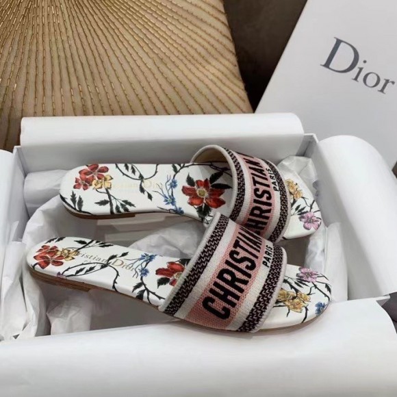 Dior Dway Slides In Rosa Mutabilis Embroidered Cotton