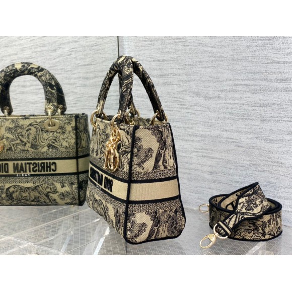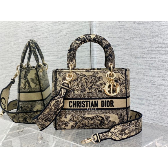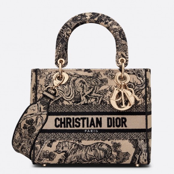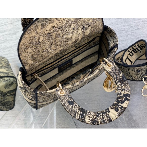 Dior Lady D-Lite Medium Bag In Brown Toile de Jouy Embroidery