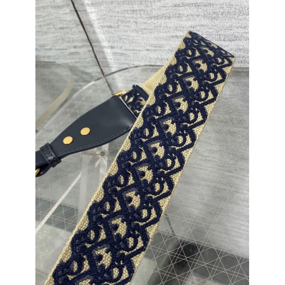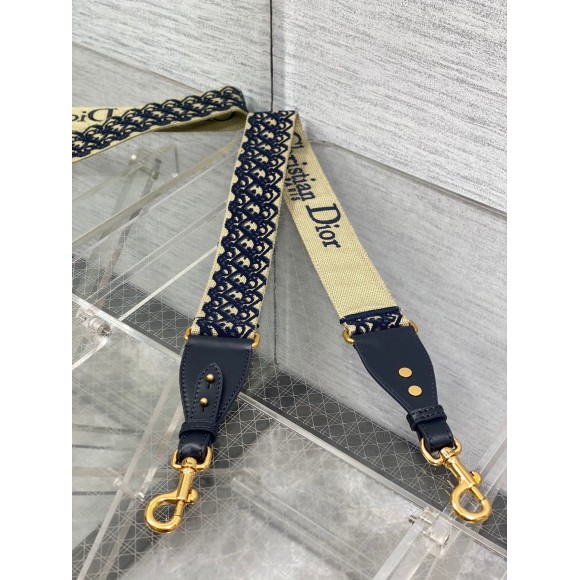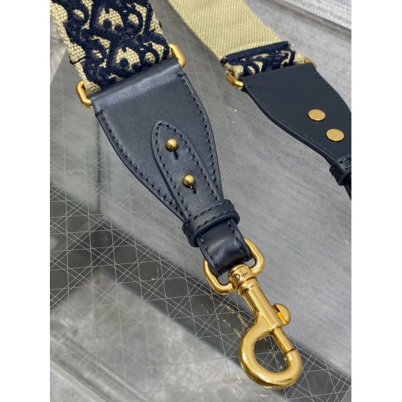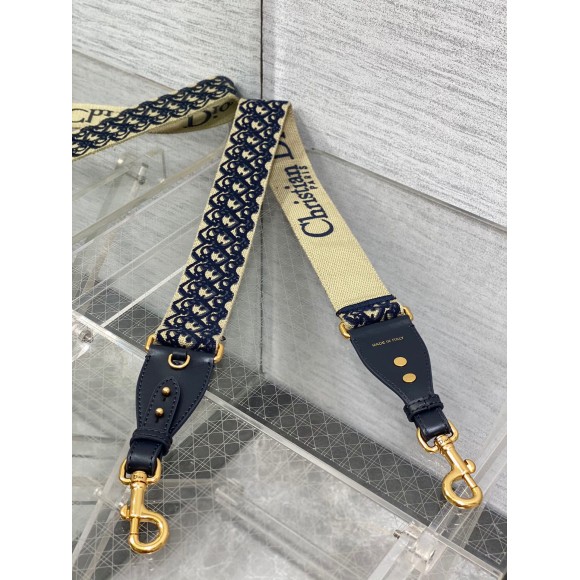 Dior Shoulder Strap with Ring in Blue Oblique Embroidery