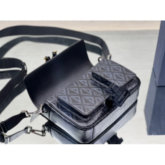 Dior Hit the Road Messenger Bag In Black CD Diamond Canvas