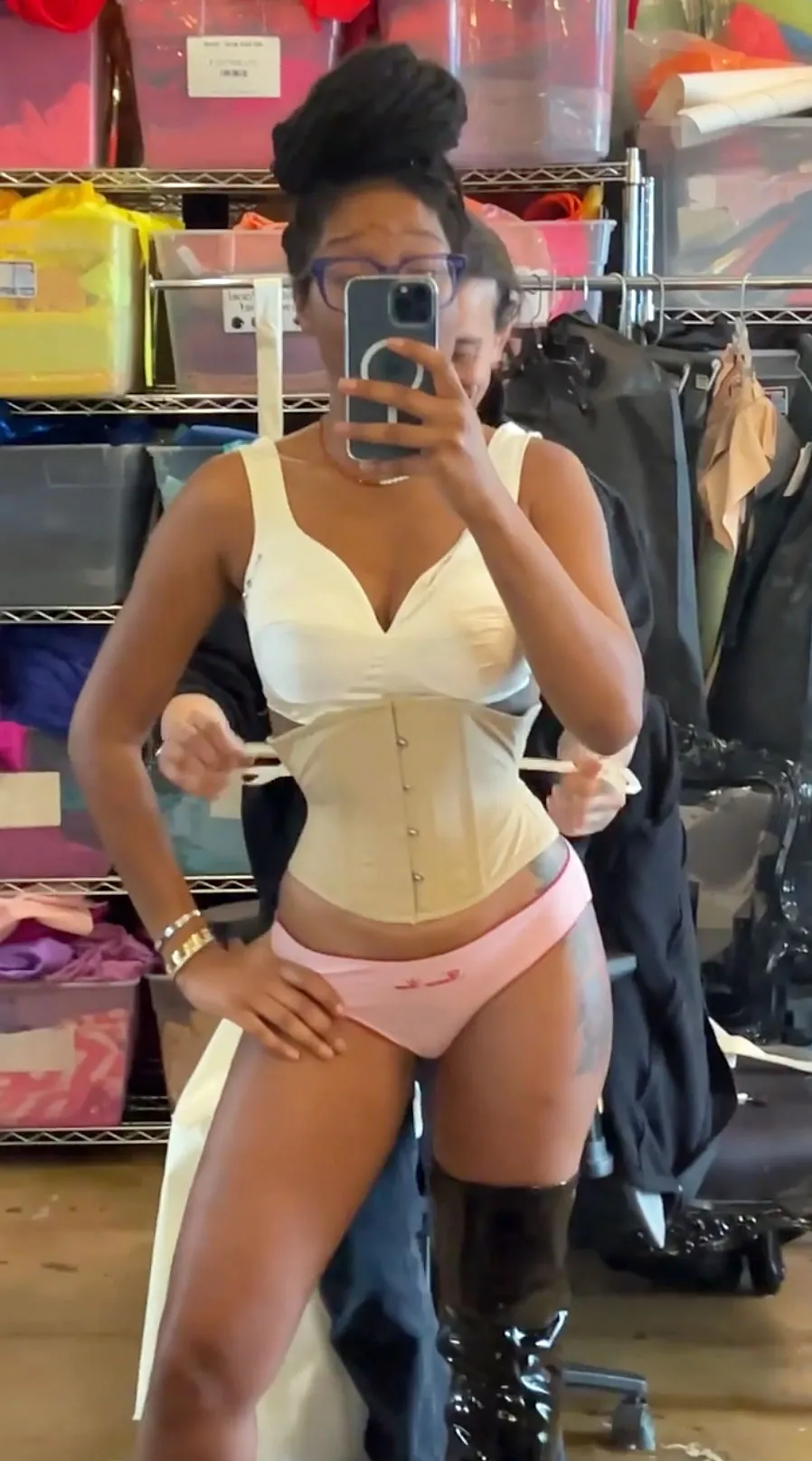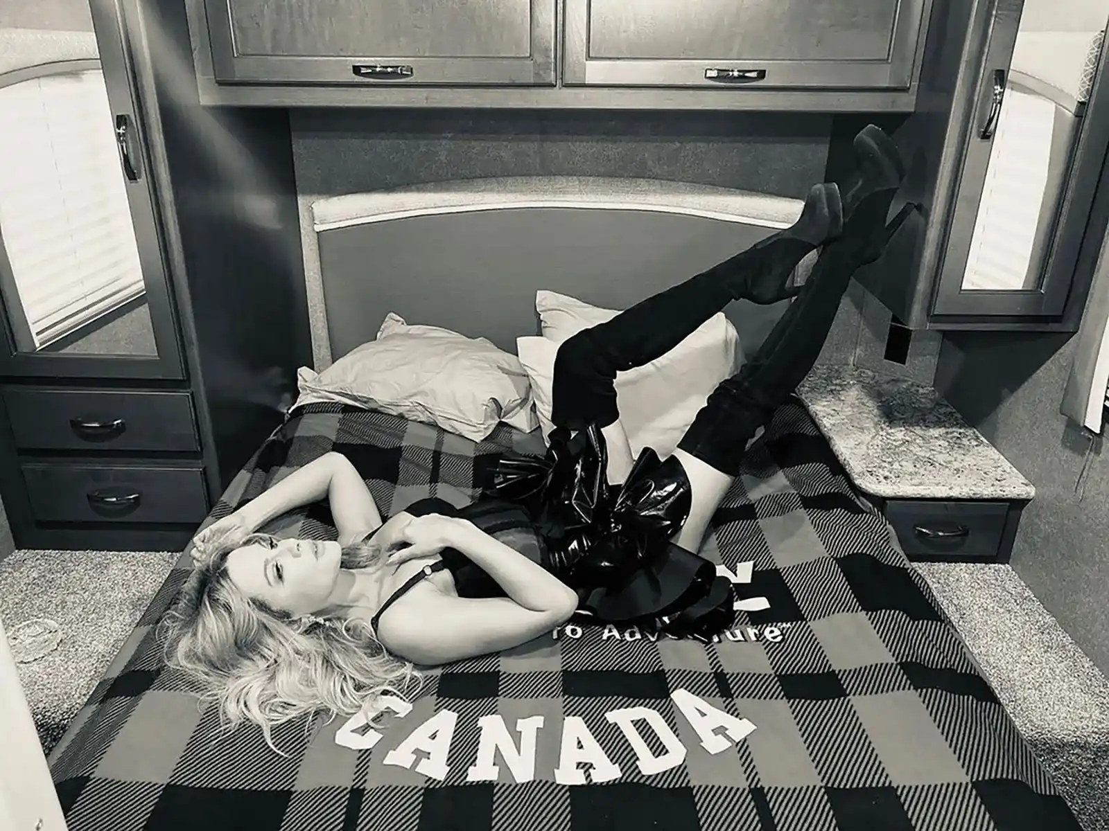 Ashley Graham también mostró sus curvas durante la Semana de la Moda de Nueva York 2017, en un video Boomerang que la mostraba saltando en la cama en nada más que un sostén y ropa interior.