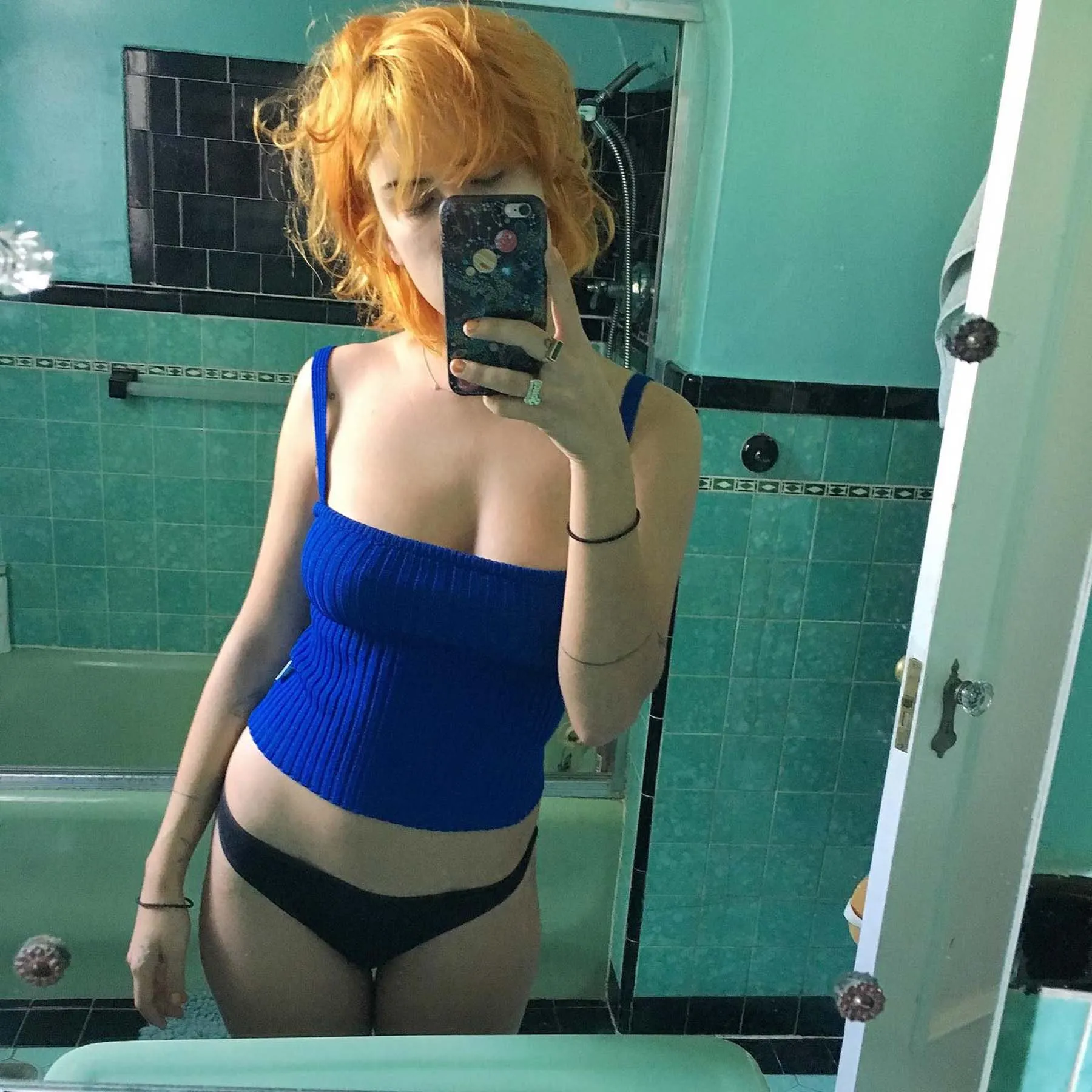 Kim Kardashian no es ajena a una foto sexy. En una de nuestras tomas favoritas, mostró su ropa interior de Calvin Klein en un selfie frente al espejo en blanco y negro, luciendo fuerte y absolutamente hermosa. Su hermana menor Kendall Jenner también capturó una imagen en una tanga de encaje y una camiseta blanca corta que mostraba un poco de underboob.