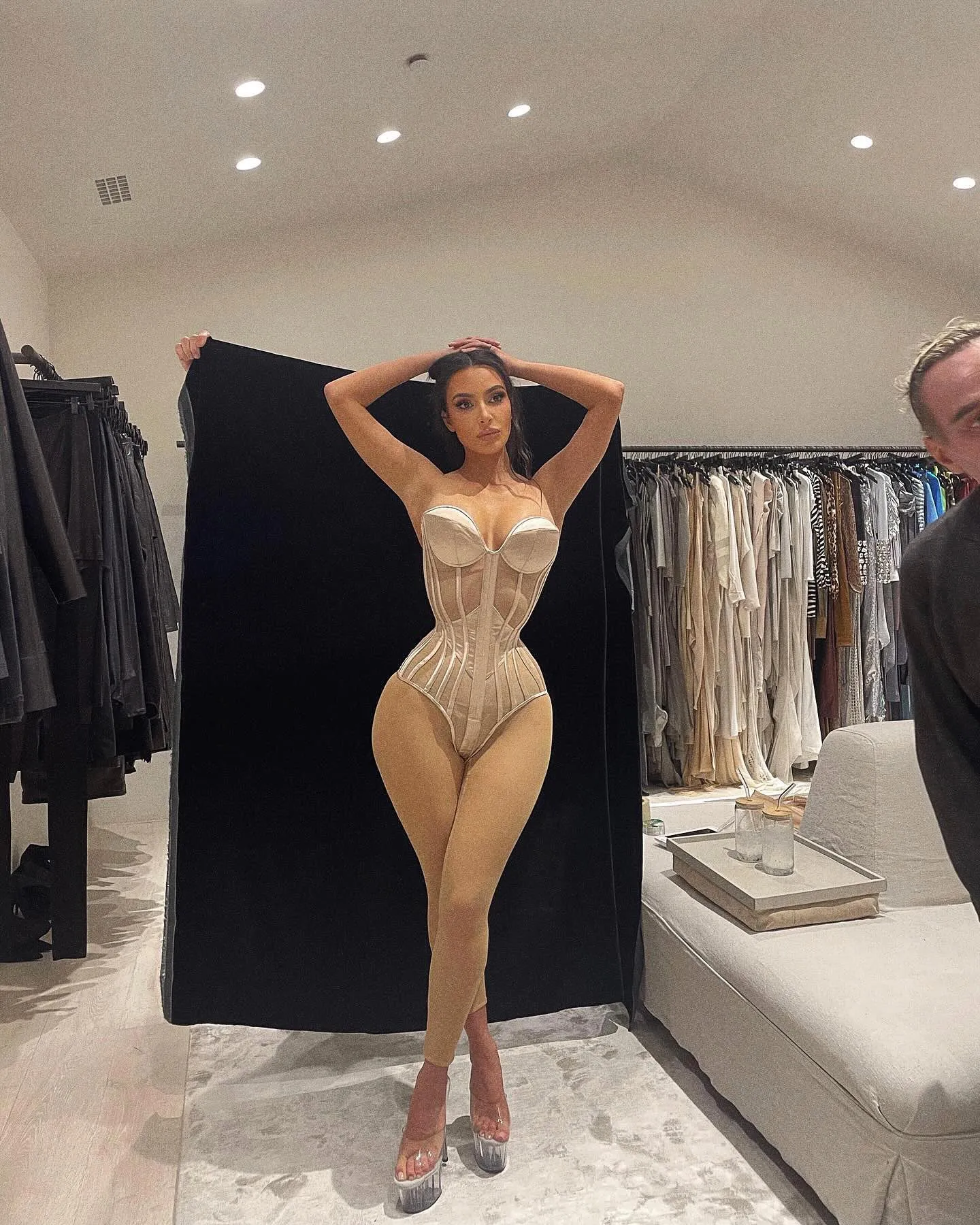 Mientras promovía su colaboración de lencería con Frederick’s of Hollywood, Megan Fox publicó en Instagram un cuerpo de encaje blanco similar al minivestido bustier de encaje negro de Bella Hadid, solo que Hadid lo llevó puesto una noche por la ciudad durante una fiesta de la Semana de la Moda de París, combinándolo con medias transparentes y tacones Mary Jane de charol para la ocasión.