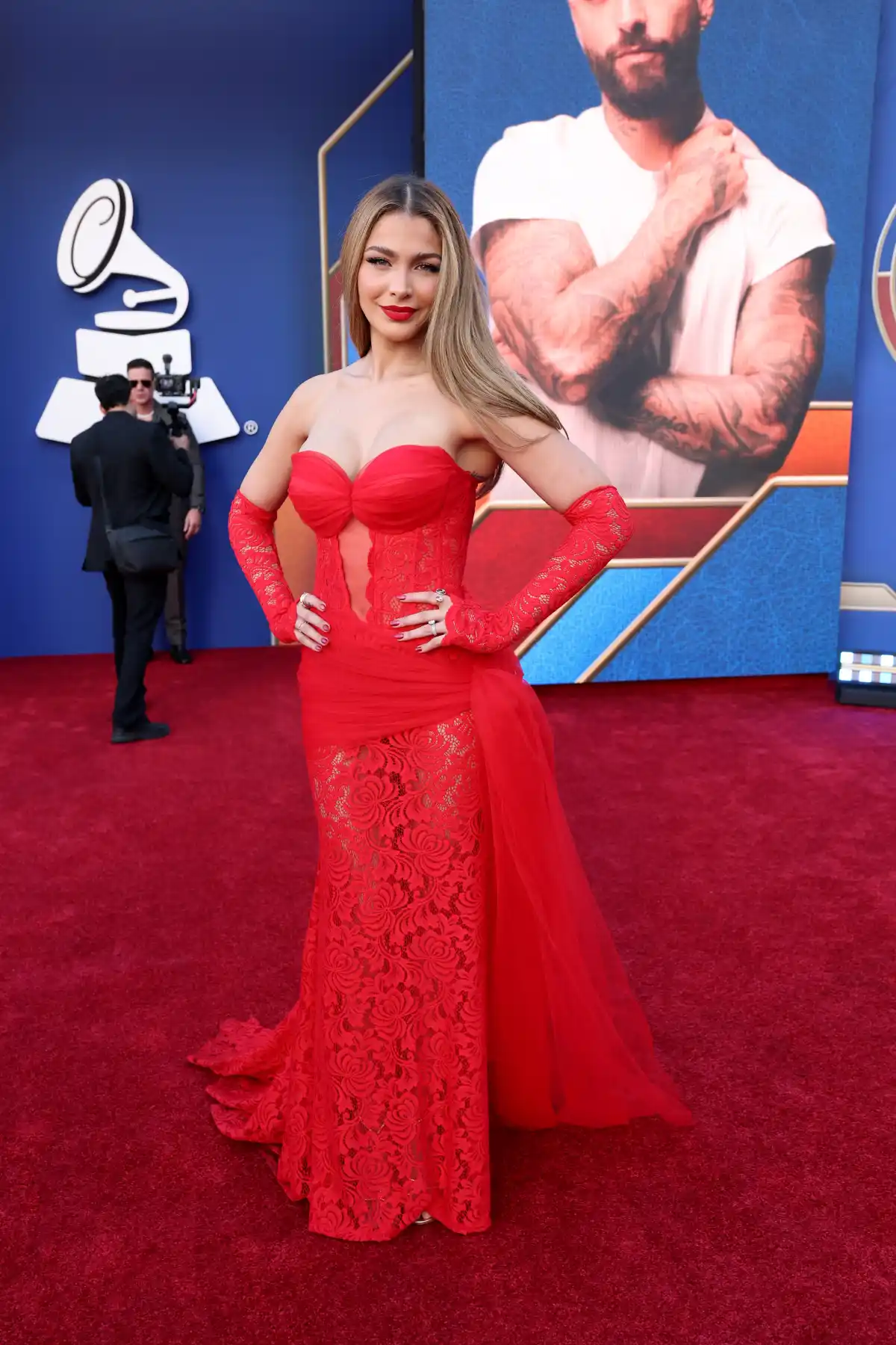 Entre las personalidades destacadas que pisaron la alfombra están Alejandro Sanz y Christian Nodal junto a su esposa, Ángela Aguilar. También desfiló Karol G, una de las figuras más influyentes del pop urbano, así como nuevos nominados que aprovecharon los reflectores para mostrar su estilo y personalidad.