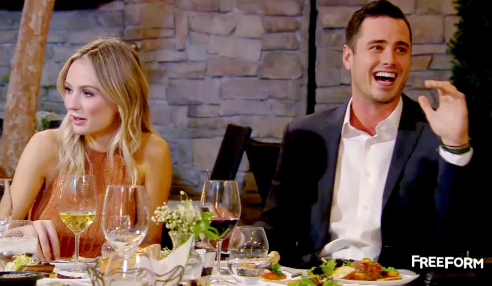 One scene shows them out to dinner at a fancy restaurant with former Bachelor star Ben Higgins and fiancée Lauren Bushnell. “Steak tartare with quail egg,” Higgins tells the server. One of the twins quickly chimes in with a suggestion: “Only one ‘tar,’ though.”