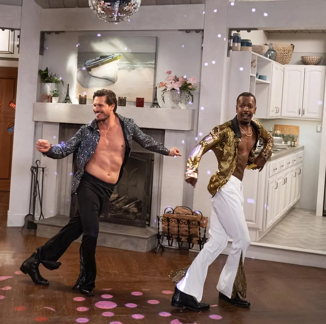 “It honestly came together very naturally and in the moment,” Savchenko tells Luxury Handbag Shopping of choreographing a dance with Hill. “Marcquet and I built the choreography on the spot. We were feeding off the energy in the room, and everyone was fully committed, which made it easy to lean into a fun, high-energy disco vibe inspired by Saturday Night Fever. The goal was really simple: to walk in and instantly elevate the party. The reveal of the waiters turning into dancers really sealed the moment, especially because the cast didn’t see it coming.”