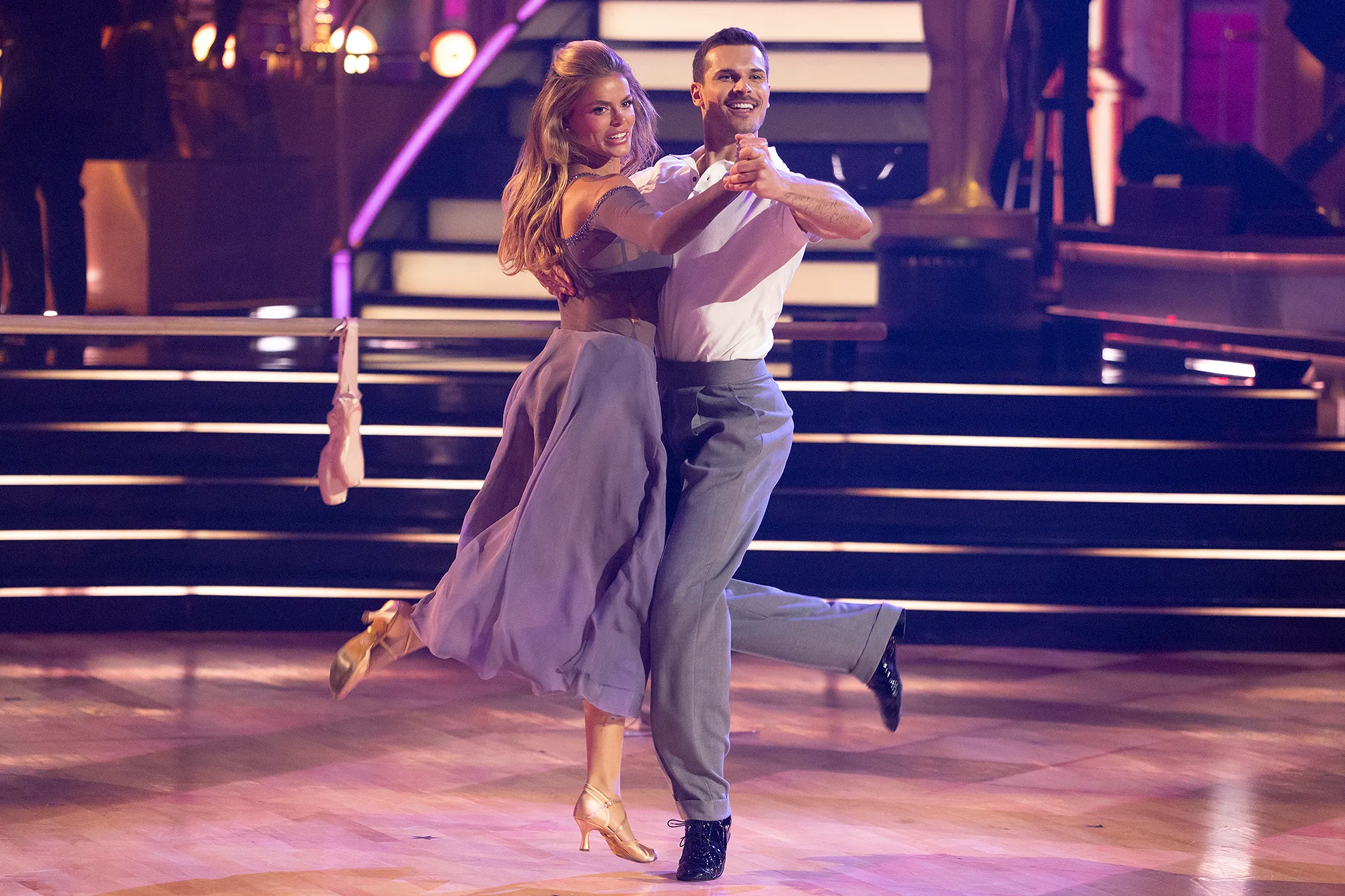 “That will be a theme throughout the season. But it’s a huge bonus to actually really be into your partner,” she said. “You have to be with this person sweaty and on top of them all day for five hours. Every day — not just show day. So it’s kind of nice that you like each other.”