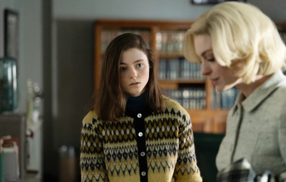 To elaborate in any way would be spoiling all the fun. What can be spoiled is the fact that Eileen is superbly acted, with one performer in particular standing out. Hathaway is still best known for her 2000s work in The Princess Diaries movies and The Devil Wears Prada, so it’s a bit of a shock to see her play a vamp in chic Chanel clothing. And maybe if Rebecca was nothing more than an evil seductress, a ‘60s version of Sharon Stone’s Catherine Tramell, Hathaway wouldn’t be so effective.