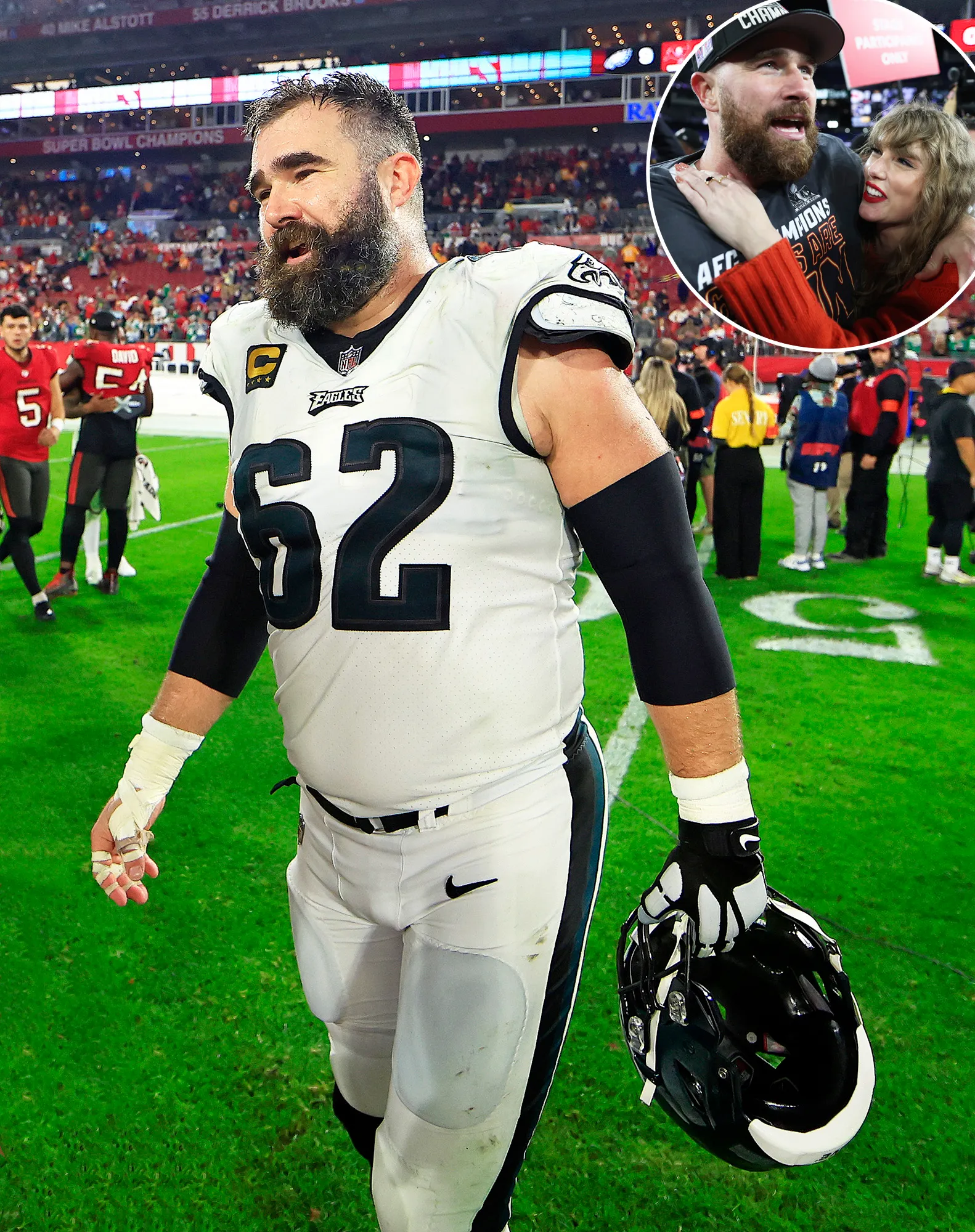 Jason Kelce knows all eyes are on his brother Travis Kelce’s games whenever Taylor Swift attends, and he sees the spotlight as a positive.