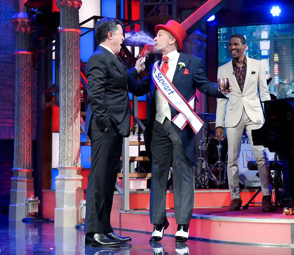 “He’s worse!” Colbert, 52, and Stewart yelled in unison.
