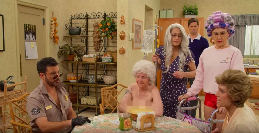 Blanche Devereaux would be proud. Lena Dunham and her Girls costars transformed into the Golden Girls cast for a hilarious skit on the Wednesday, April 5, episode of Jimmy Kimmel Live!