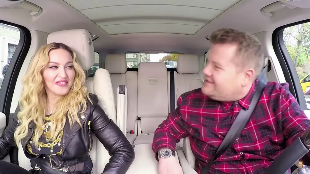 “I don’t really like driving around in a car listening to music,” the Material Girl insists in the video, before quickly giving in and Voguing and twerking up a storm in the passenger seat beside the British comedian.