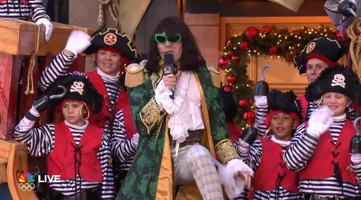 The singer debuted a new song while on the Jolly Polly Pirate Ship on Thursday, November 27. He was wearing a pirate costume of his own (complete with green sunglasses) and, yes, made sure those signature dance moves were on full display. He was gyrating his hips throughout the entire song, using the pirate ship as a prop.