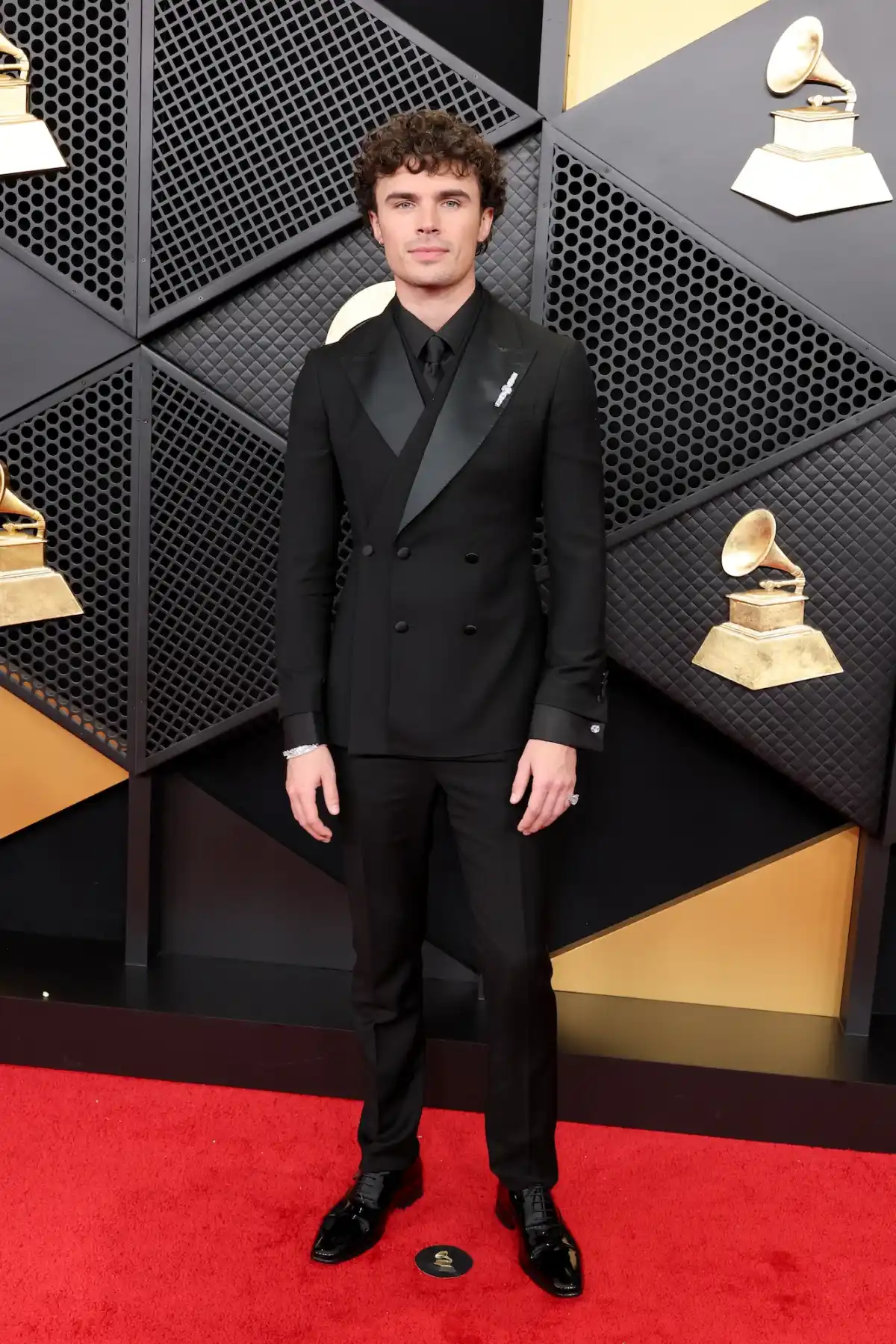 Vansteenberghe walked the red carpet at the Cypto.com Arena in Los Angeles solo, donning an all-black suit from Couture Menswear and pairing the look with jewelry from Azature.