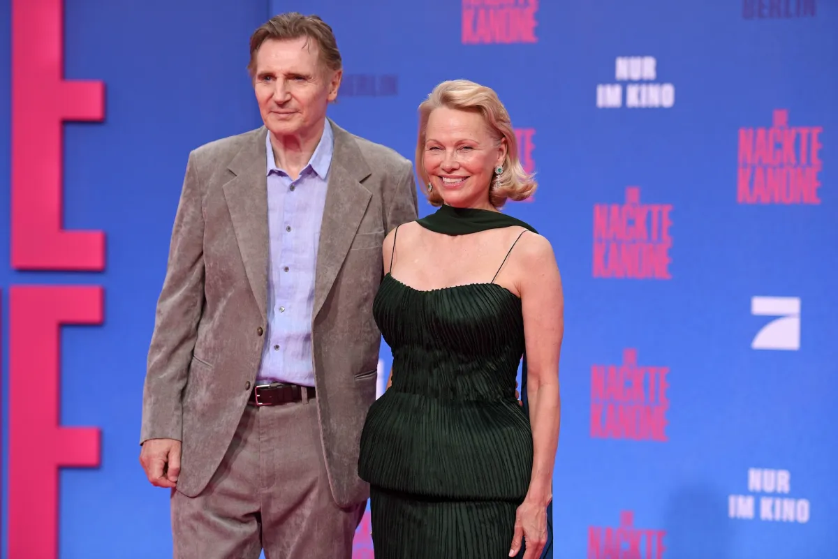 Pamela Anderson is radiating love amid her steamy The Naked Gun press tour alongside costar Liam Neeson.