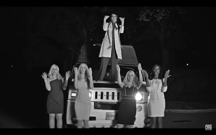 In the hilarious sketch, which was inspired by Queen Bey’s “Sorry” music video, Melania is joined by stepdaughters Ivanka Trump (Emily Blunt) and Tiffany Trump (Vanessa Bayer), as well as Donald’s campaign manager Kellyanne Conway (Kate McKinnon) and his “only black friend” Omarosa (Sasheer Zamata).