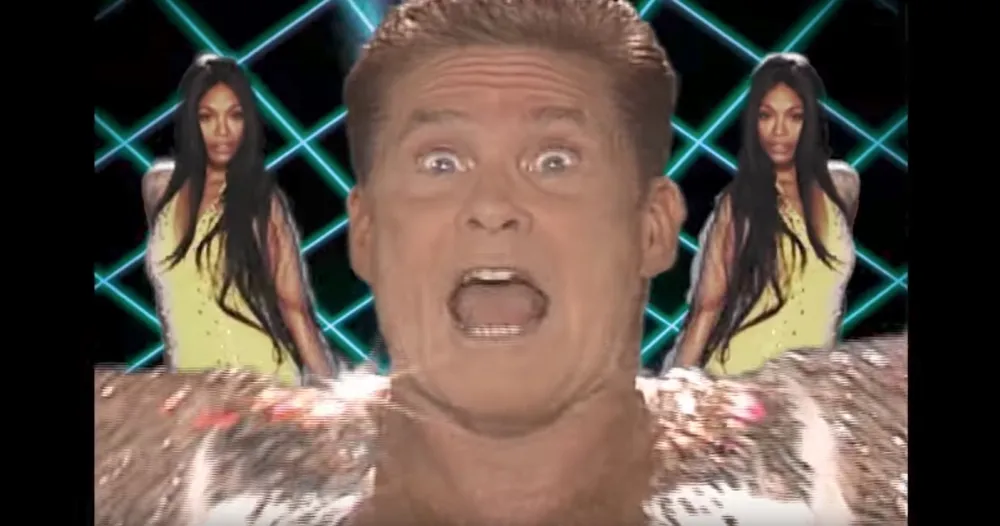 There are dancing aliens, space-themed backgrounds and classic ’70s and ’80s-inspired disco dance moves that make the video worth watching more than once (if you can stomach repeat viewings of The Hoff’s hairy chest).