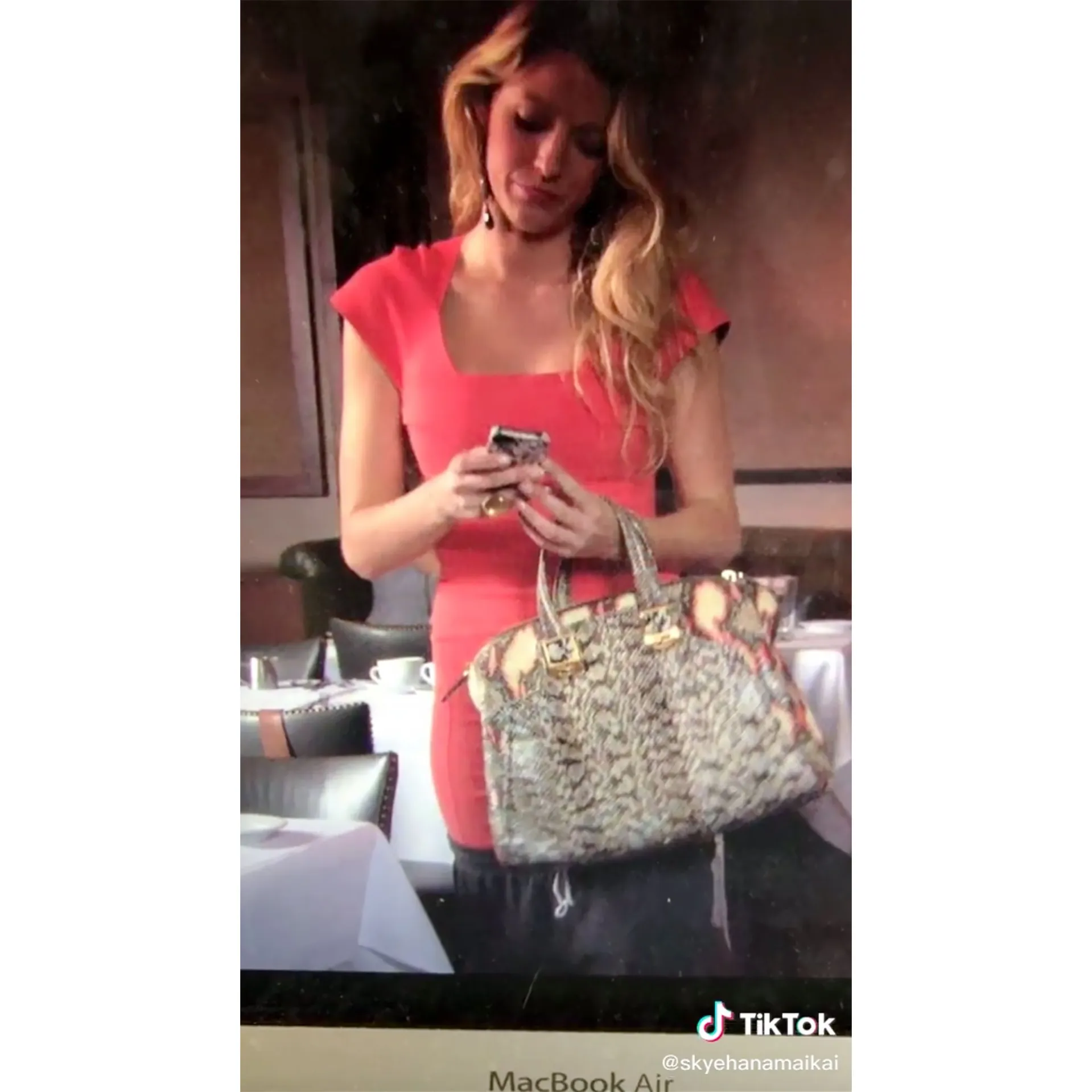 In May 2020, the first of many GG editing errors was spotted on the social media platform. One eagle-eyed user rewatched the fourth episode of season 6, titled “Portrait of a Lady Alexander.” Within the first few shots, Serena Van Der Woodsen (Blake Lively) is seen in a tight peach dress with an oversized snakeskin handbag as she sits down at a table at a restaurant.