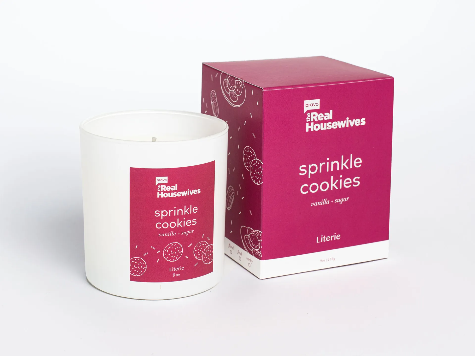 There are two holiday scents, one inspired by RHONJ — Sprinkle Cookies — and one with a reference to Real Housewives of Beverly Hills — Snowing in Pasadena. Plus, a BravoCon exclusive candle — Pinot Grigio.