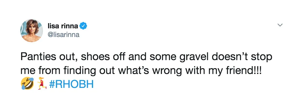 “I was obviously joking about the steak & strip bar,” she tweeted on Wednesday. “I said it in my confessional but never made it in the episode #rhobh.”