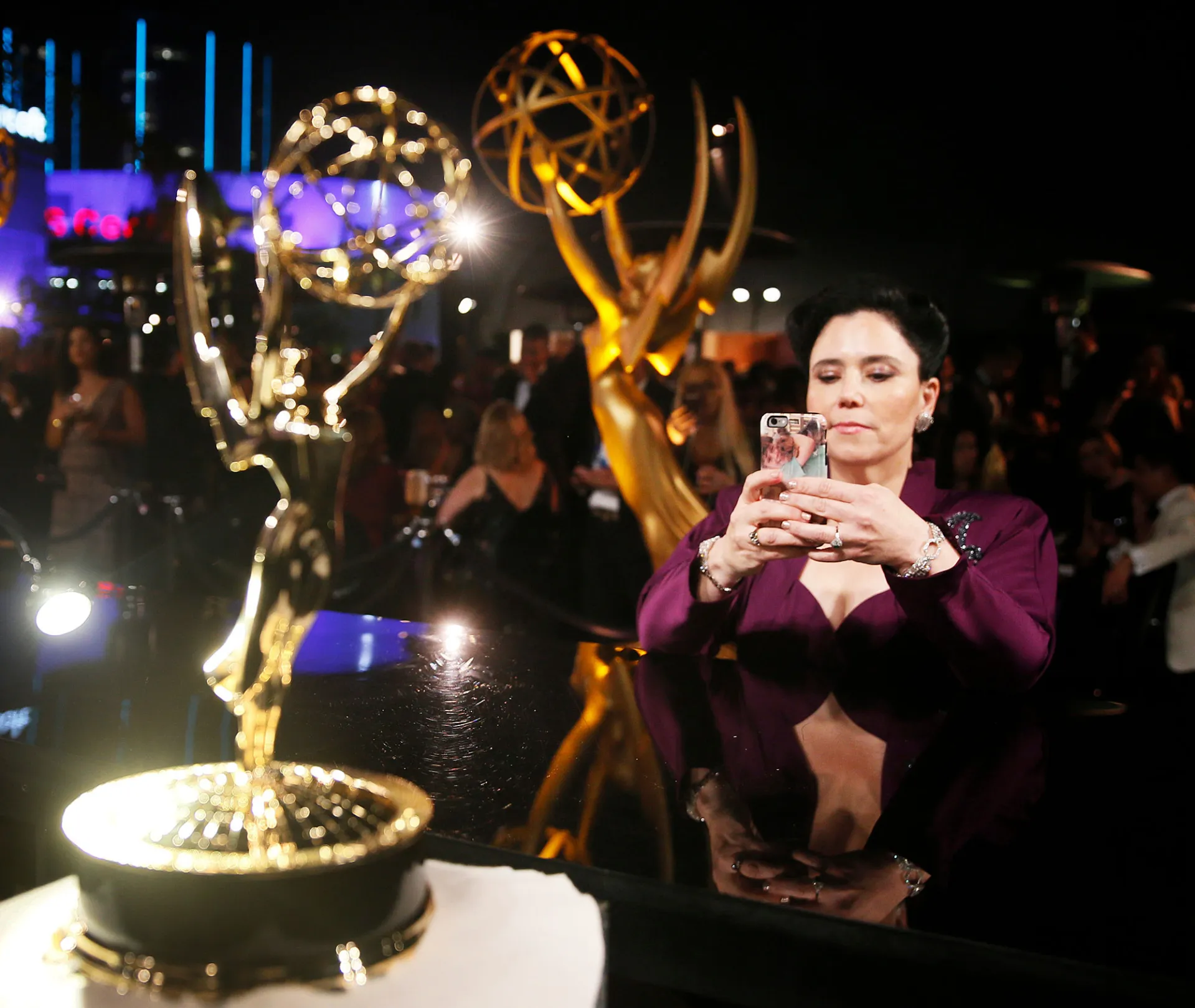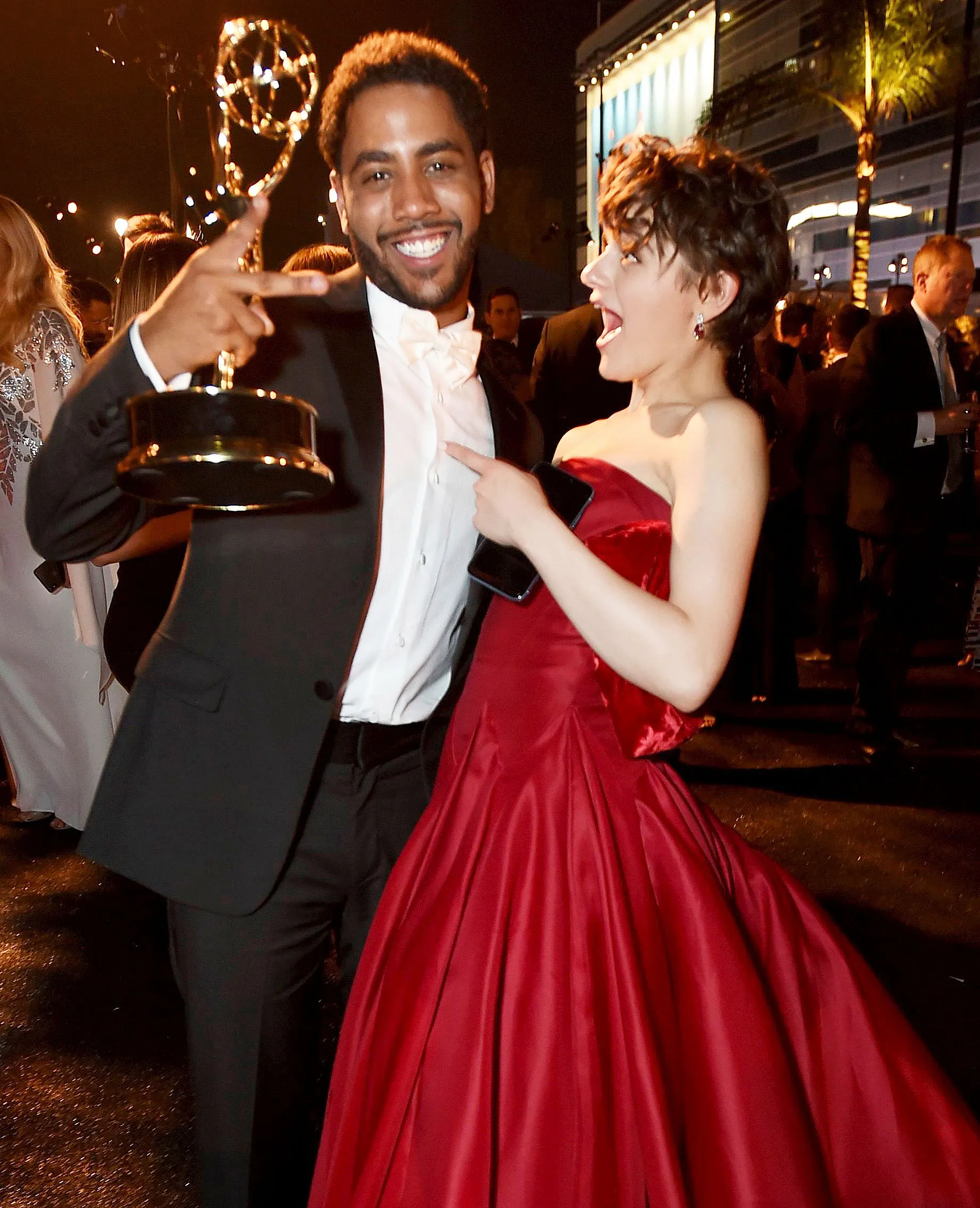 At the HBO party at the Pacific Design Center, all eyes were on the cast of Game of Thrones. Kit Harington, Iain Glen and Alfie Allen chatted behind a guarded section earlier in the night, while Sophie Turner hung out with writer Daniel Weiss. Emilia Clarke, meanwhile, was spotted celebrating all night long – when walking out of the bathroom, she sang along to LMFAO‘s “Shots” and danced.