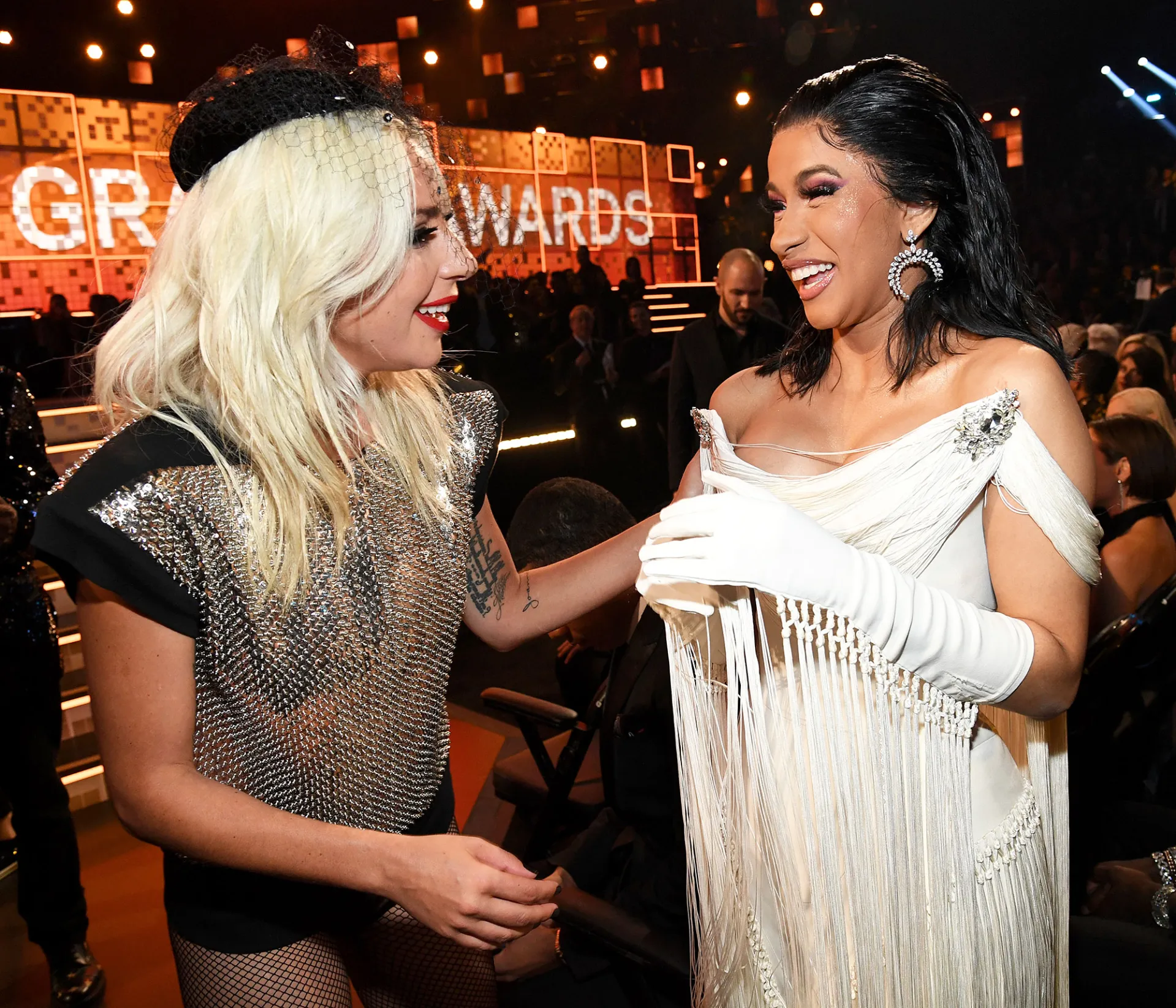 Musicians including Cardi B, Miley Cyrus, Lady Gaga, Shawn Mendes and Dolly Parton gathered at the Staples Center in Los Angeles for music’s biggest night. While many of the celebrities in attendance were busy performing, presenting, or winning awards, they still found time to chat with each other and even pose for adorable photos.