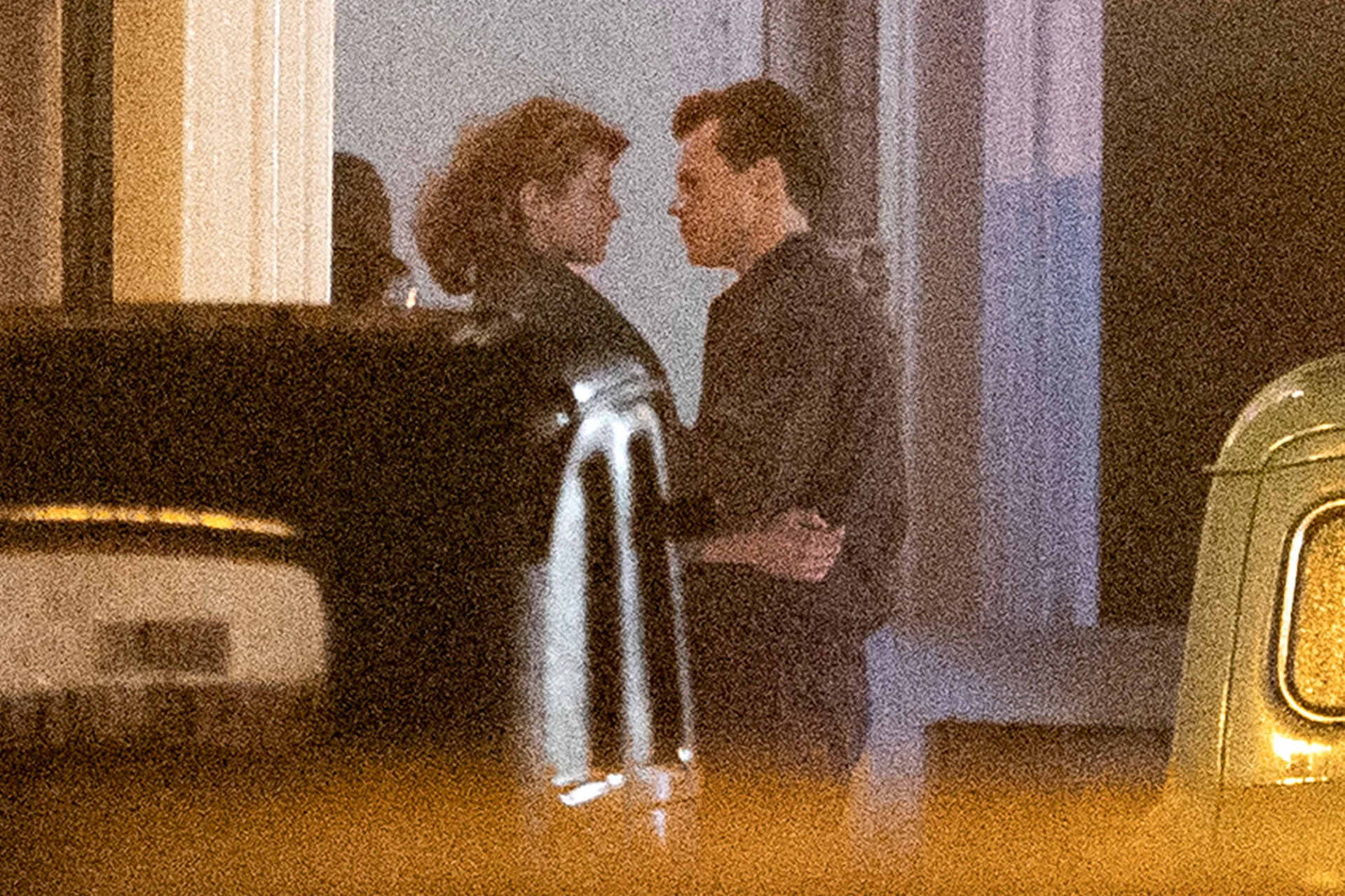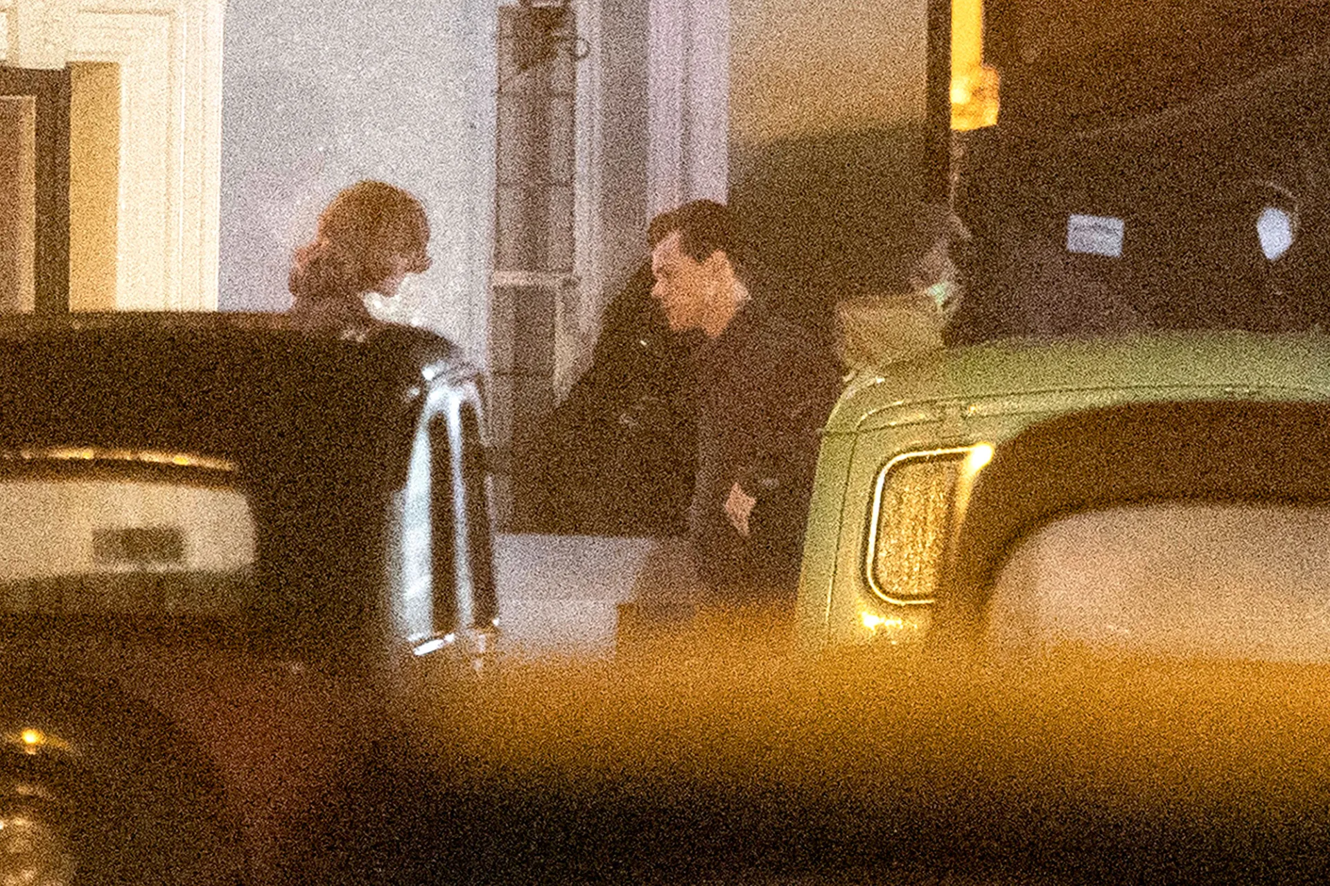 The pair were photographed embracing in 1950s period costume on Monday, May 3, while shooting in the U.K. seaside town Worthing. The “Watermelon Sugar” singer, 27, wore a dark jacket and pants, while the Crown star, 25, donned a similarly drab coat.