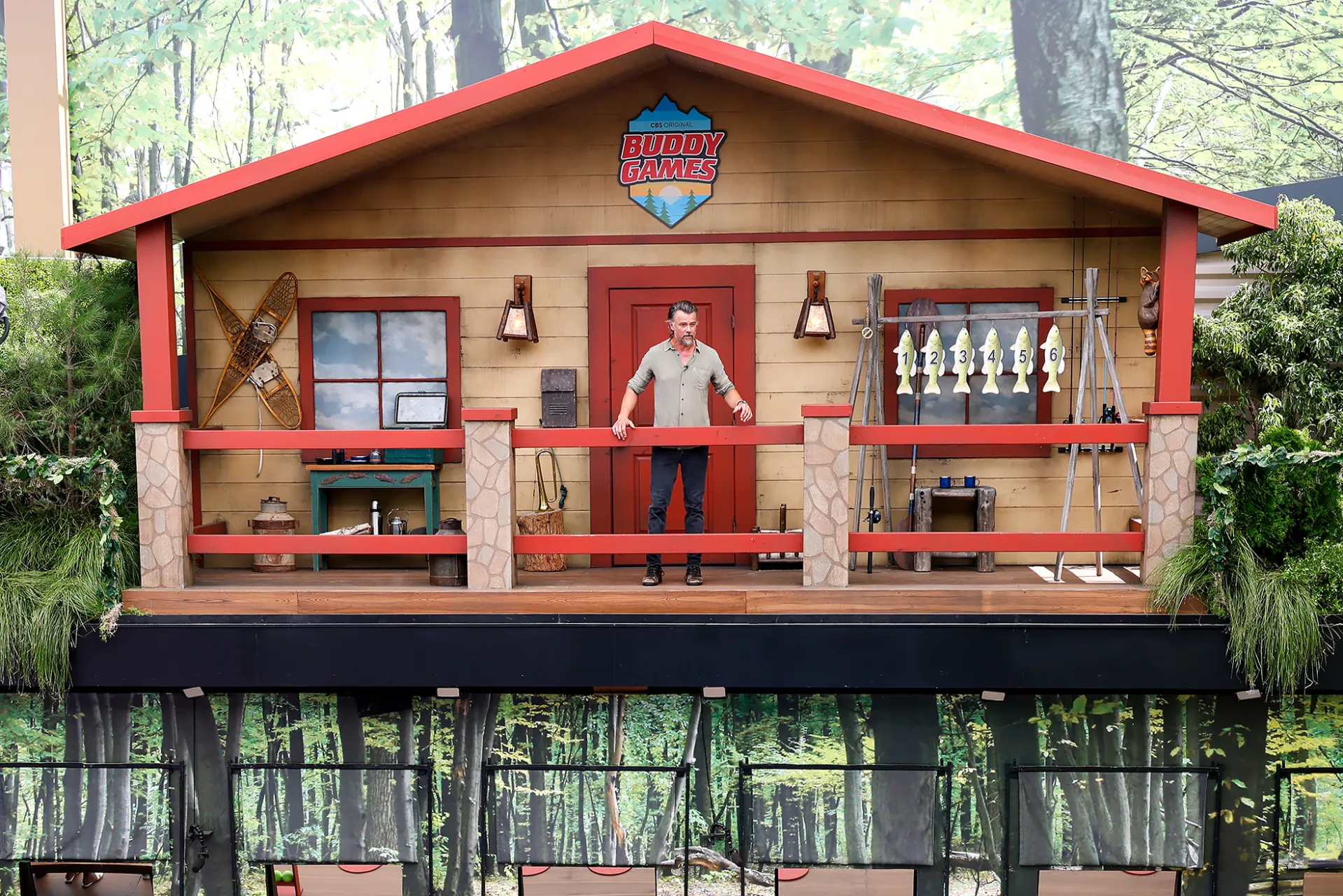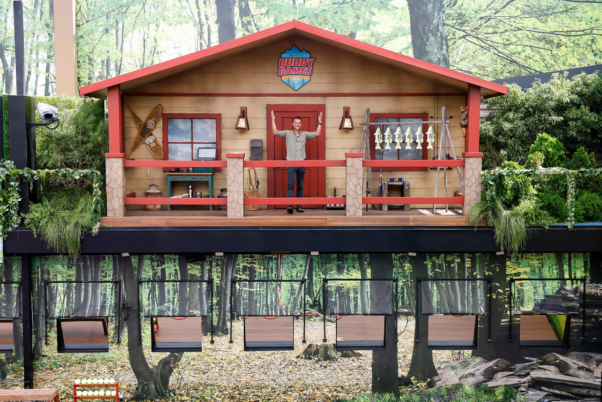 In exclusive photos obtained by Luxury Handbag Shopping, the Big Brother house is transformed into the set of Buddy Games, which premieres Thursday, September 14, complete with a log cabin, outdoor equipment and plenty of greenery.