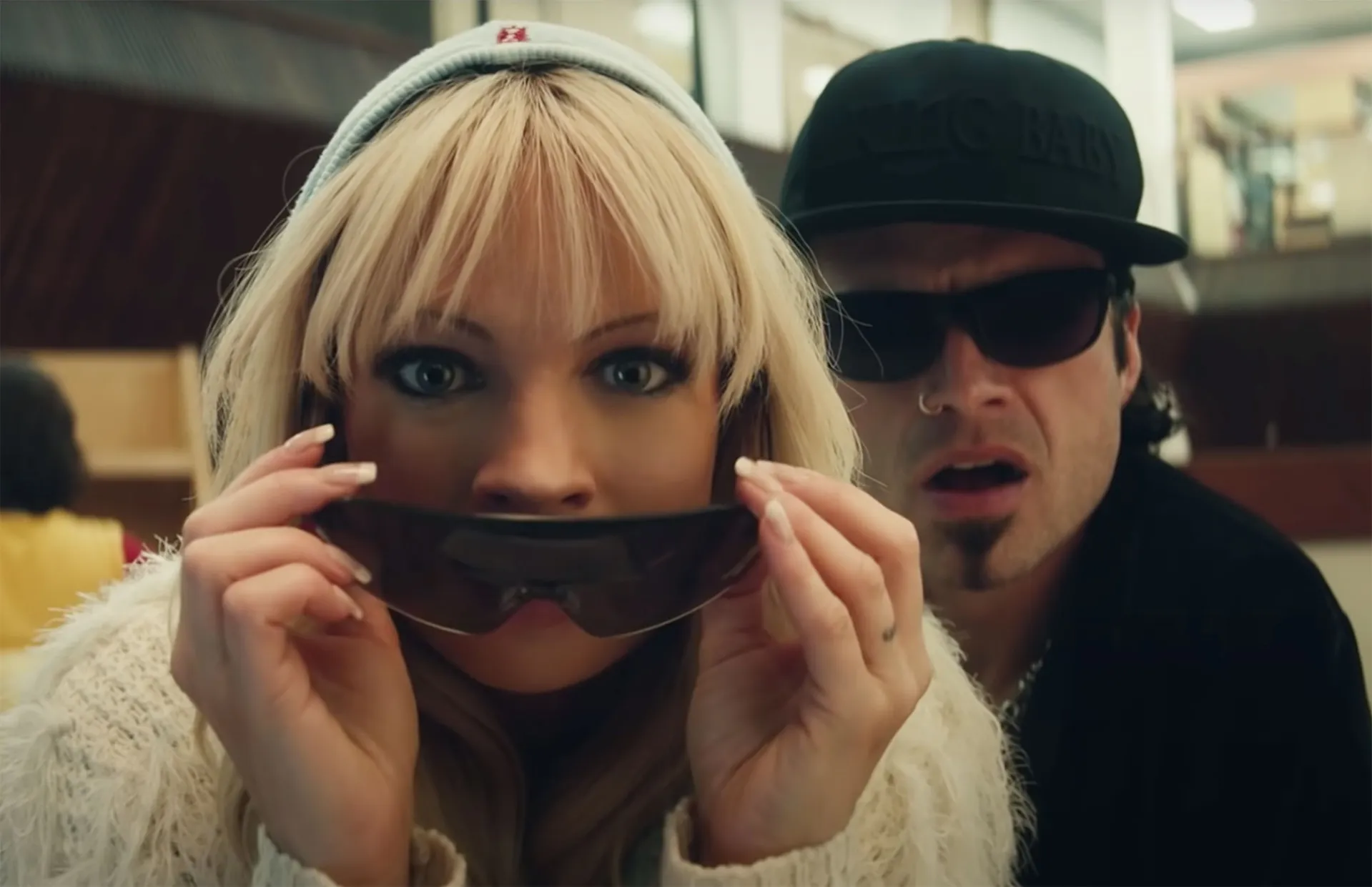“Every second that passes, this tape could be spreading,” James’ Anderson explains in the trailer. Stan, who plays the songwriter, doesn’t seem too fazed, replying, “Baby, we will get it back.”