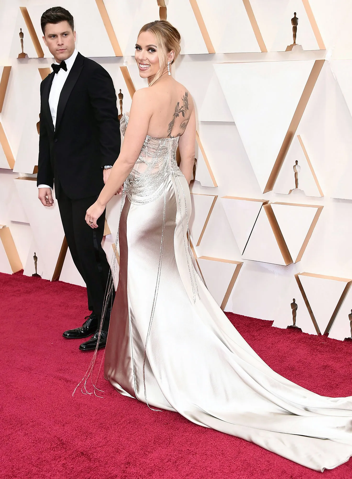 A dynamic duo! Scarlett Johansson and her fiancé, Colin Jost, heated up the red carpet at the 92nd annual Academy Awards in Los Angeles on Sunday, February 9.