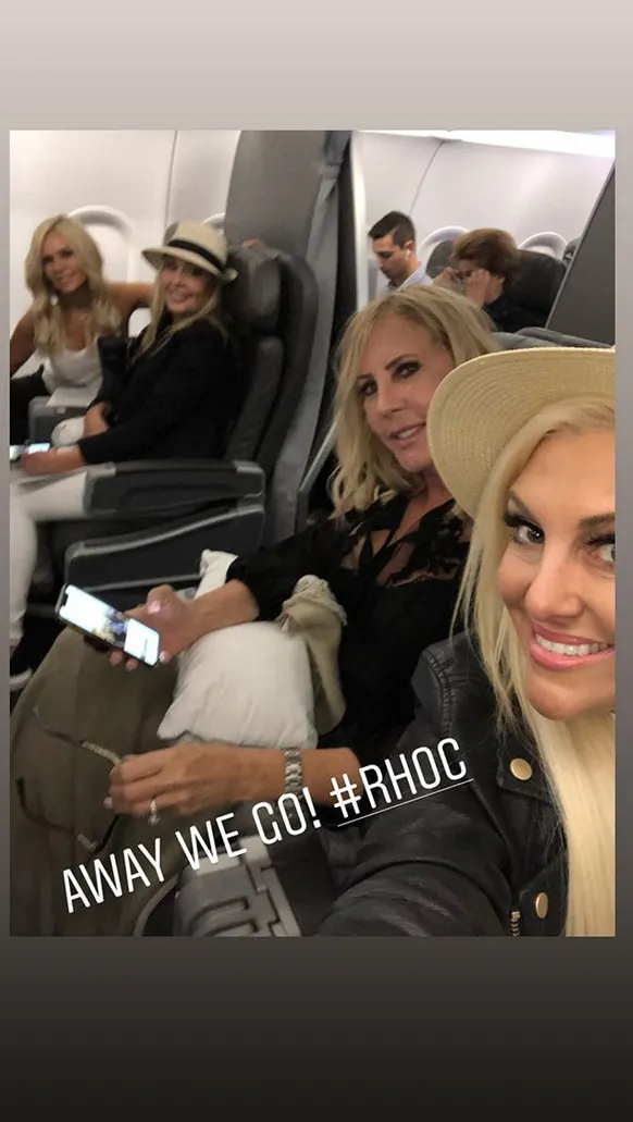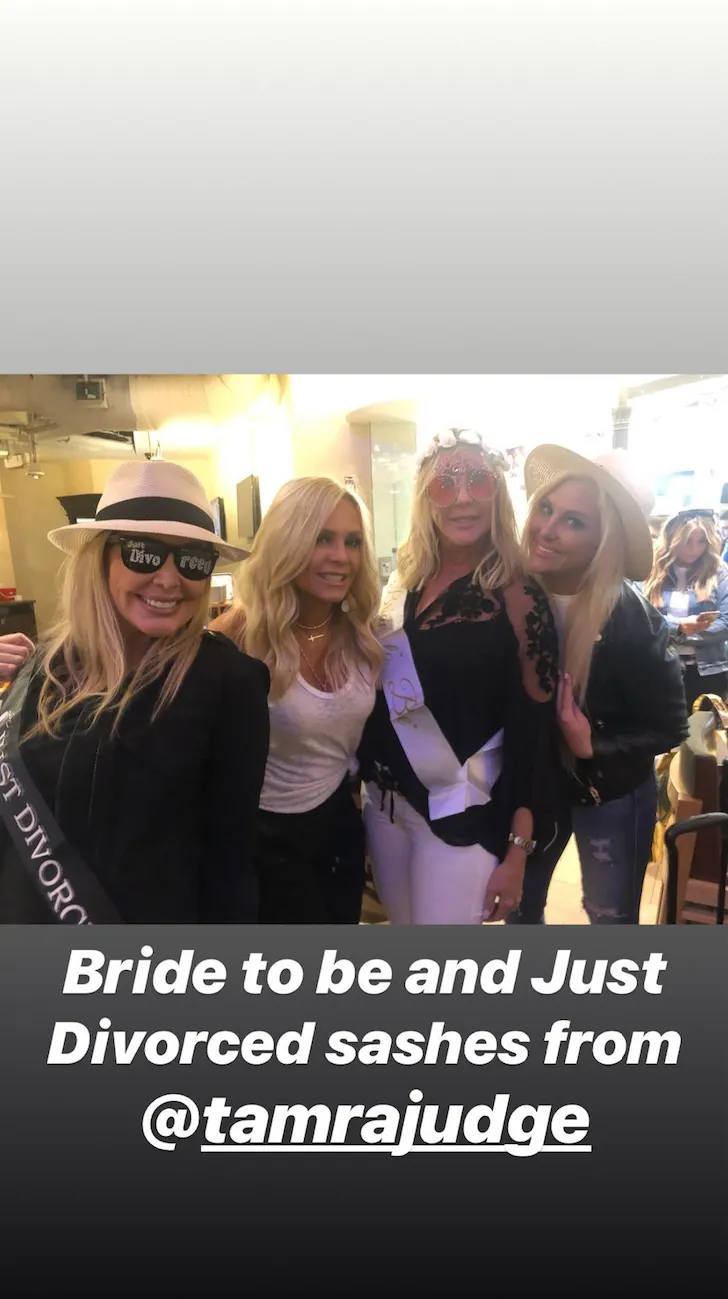 “Bride to be and Just Divorced sashes from @tamrajudge,” Vicki captioned a photo with Shannon, Tamra and Gina Kirschenheiter in the airport on Tuesday, April 30, via her Instagram Story.