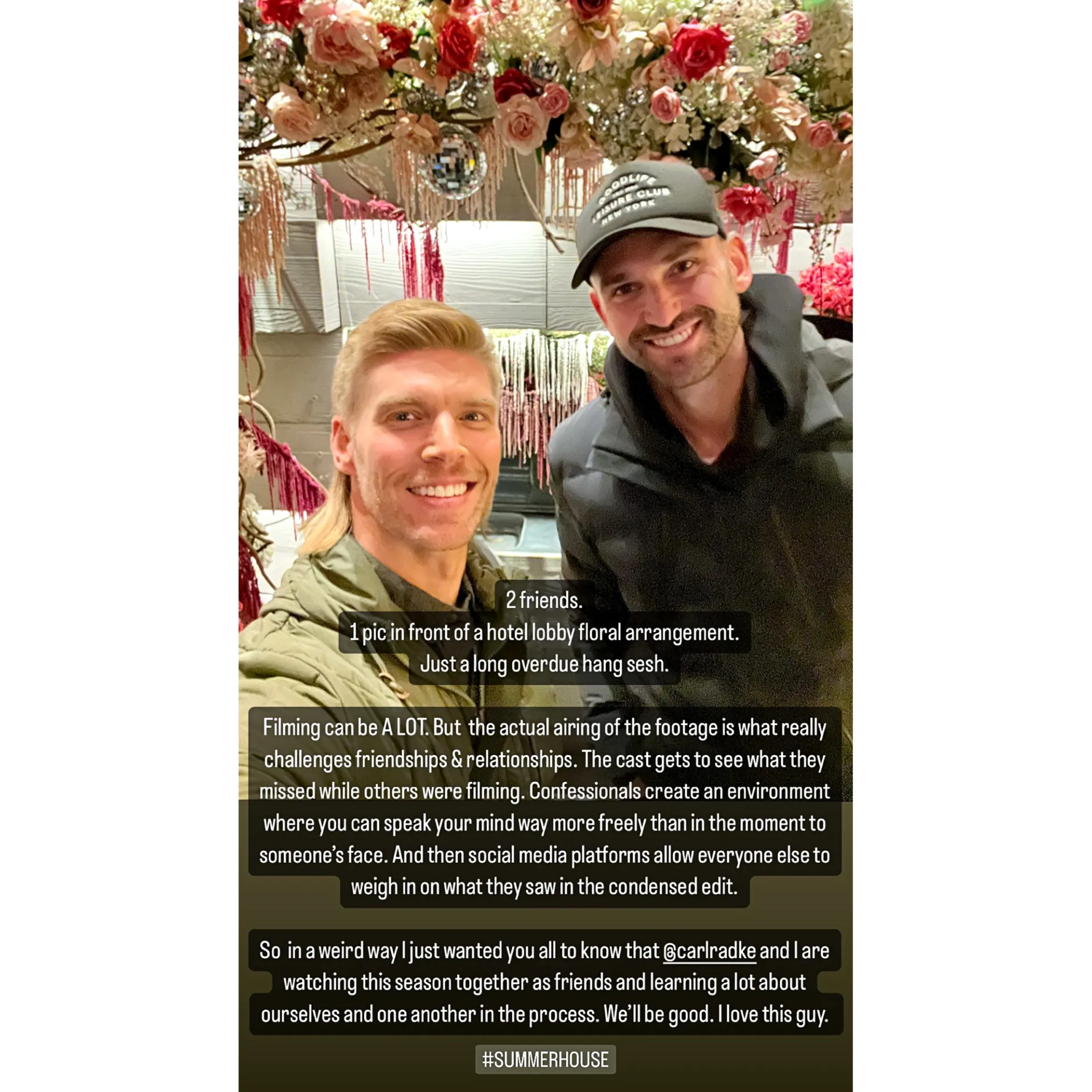 When Kyle married now-estranged wife Amanda Batula in 2021, Carl served as their officiant. However, their friendship hit a bump in the road the following summer when Carl’s relationship with Lindsay Hubbard accelerated — the two got engaged in August 2022 before splitting one year later — and he chose to leave Loverboy.