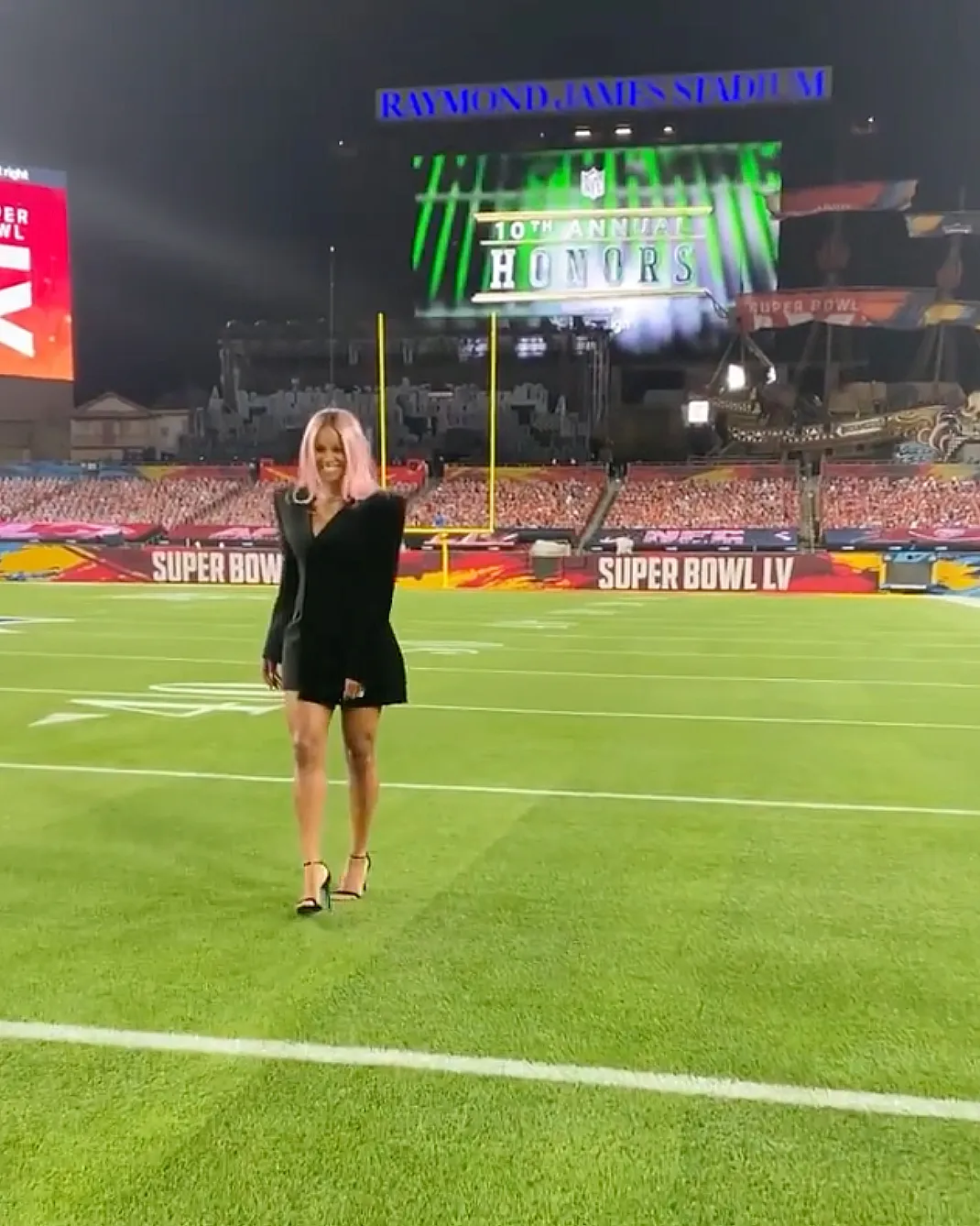 Although the 2021 event looked different than ones in years past, there was no shortage of entertainment. Miley Cyrus performed a pregame concert for healthcare workers that TikTok live-streamed, and she brought out special guests Billy Idol and Joan Jett. Moments before kickoff, H.E.R. sang a rock rendition of “America the Beautiful,” and Eric Church and Jazmine Sullivan duetted on “The Star-Spangled Banner.”