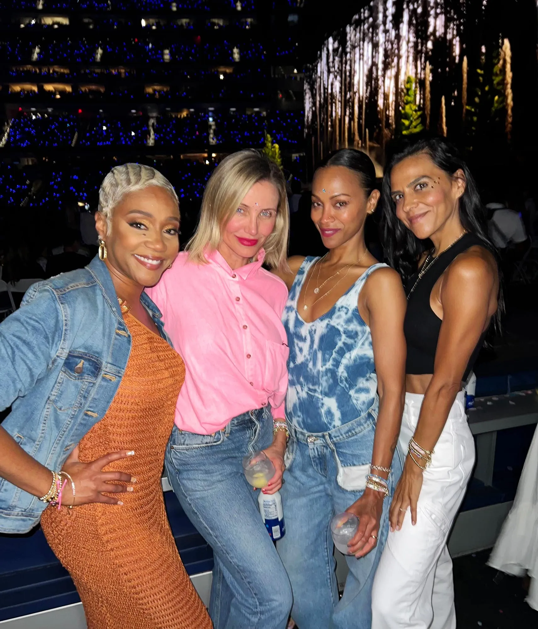 The stars of Swift’s “Bejeweled” music video — Este Haim, Danielle Haim, Alana Haim and Laura Dern — were among thousands of fans in attendance at the tour’s opening night in Glendale, Arizona’s State Farm Stadium on March 17, 2023, along with Emma Stone. Not to mention, several fans spotted Swift’s bestie Selena Gomez among the concert’s crowd.