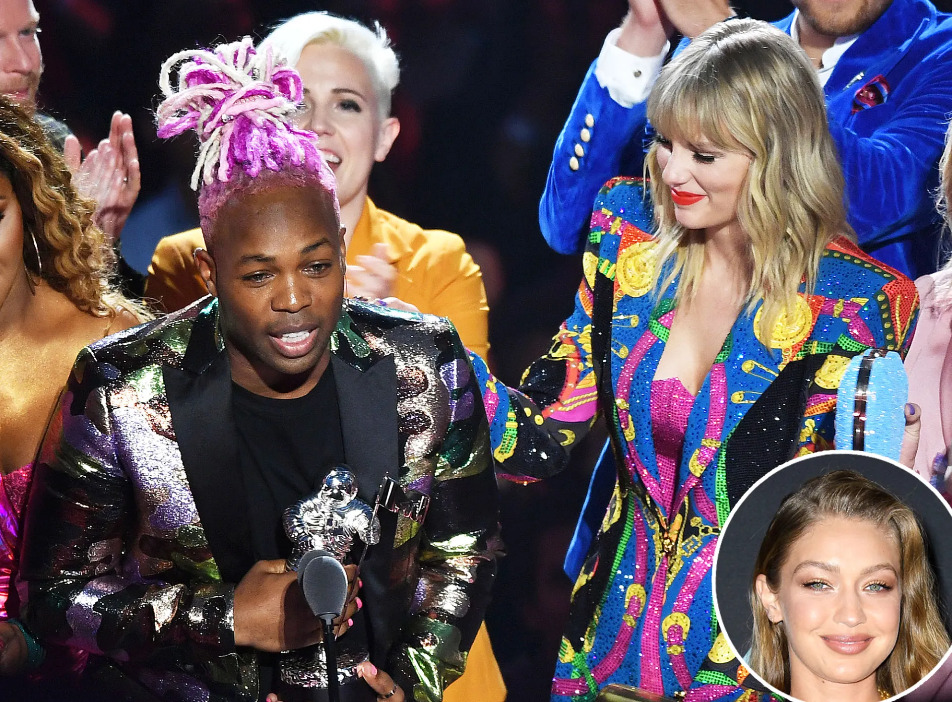 When Swift won the coveted Video of the Year, she brought up many of the stars from the video including Todrick Hall, Hannah Hart, Dexter Mayfield, Riley Knoxx and Jade Jolie, with whom she shared the award with.