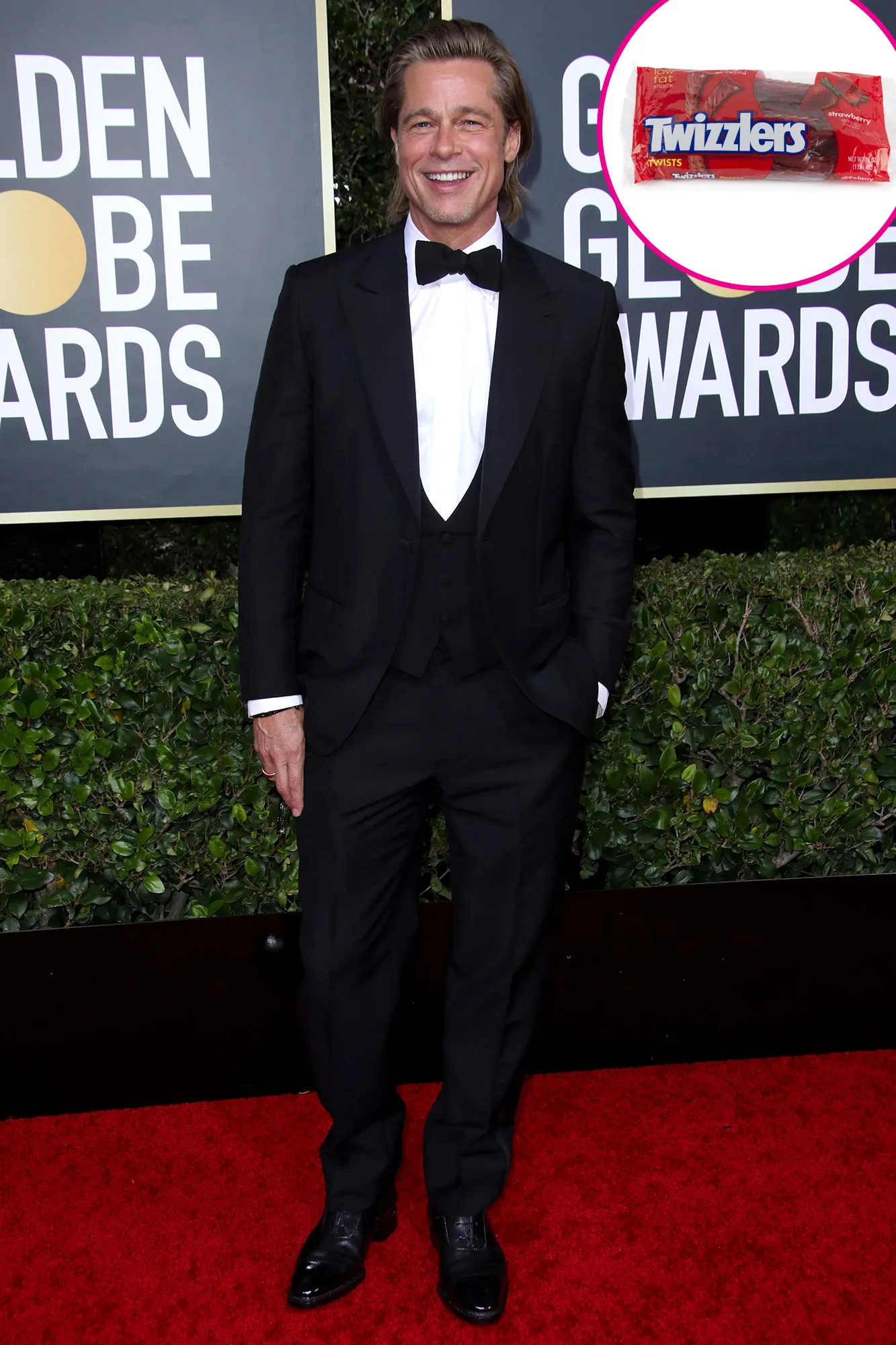 Candy on the brain! While walking the red carpet at the 2020 Golden Globes in Los Angeles on Sunday, January 5, Brad Pitt was feeling a tad peckish.