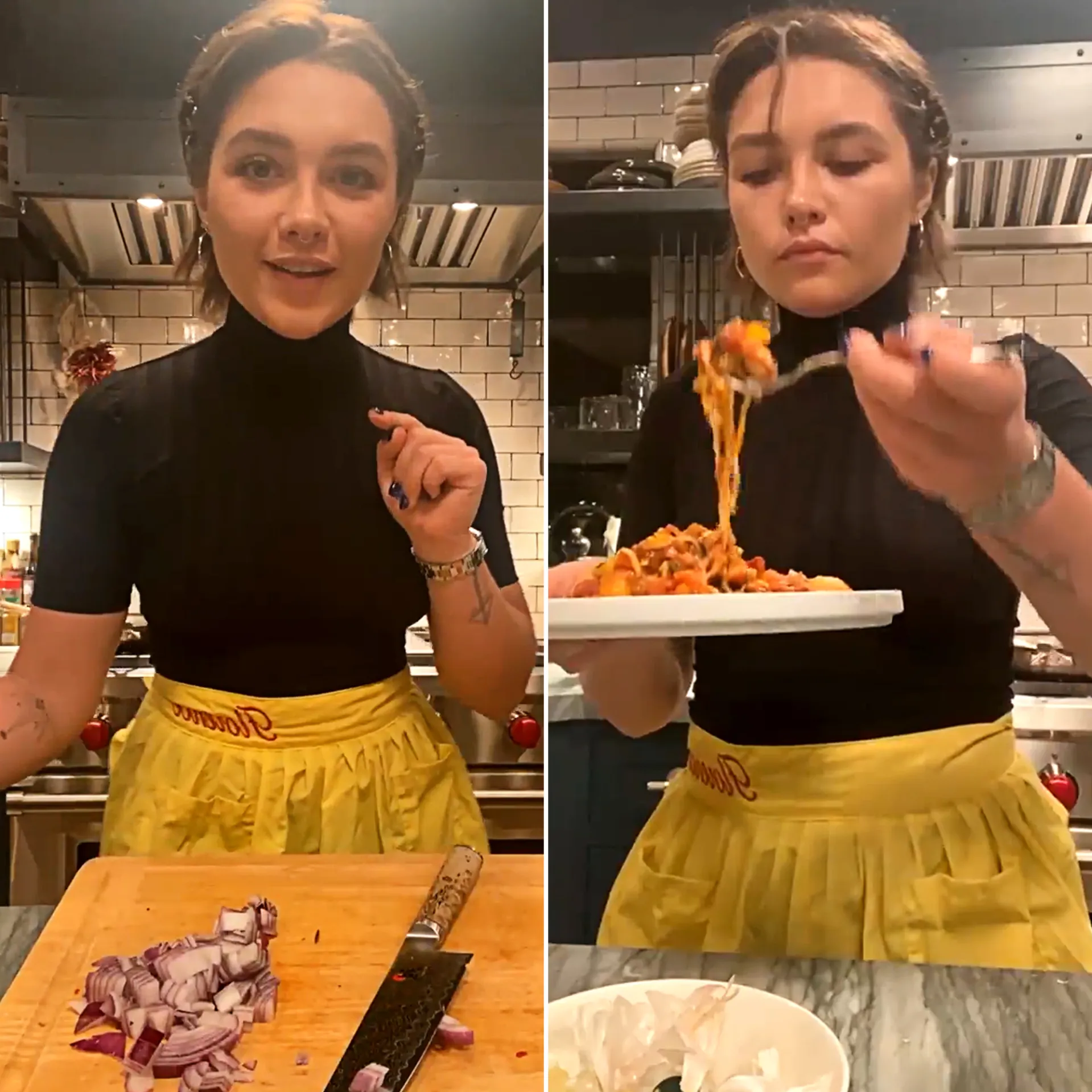 For Florence Pugh, cooking is a hobby that she shares with her social media followers. In January 2022, the Oscar-nominated actress returned to the kitchen after her taking an extended break from her Instagram show, Cooking With Flo, to teach fans to make “courgetti” (a.k.a. zucchini spaghetti) with garlic shrimp.