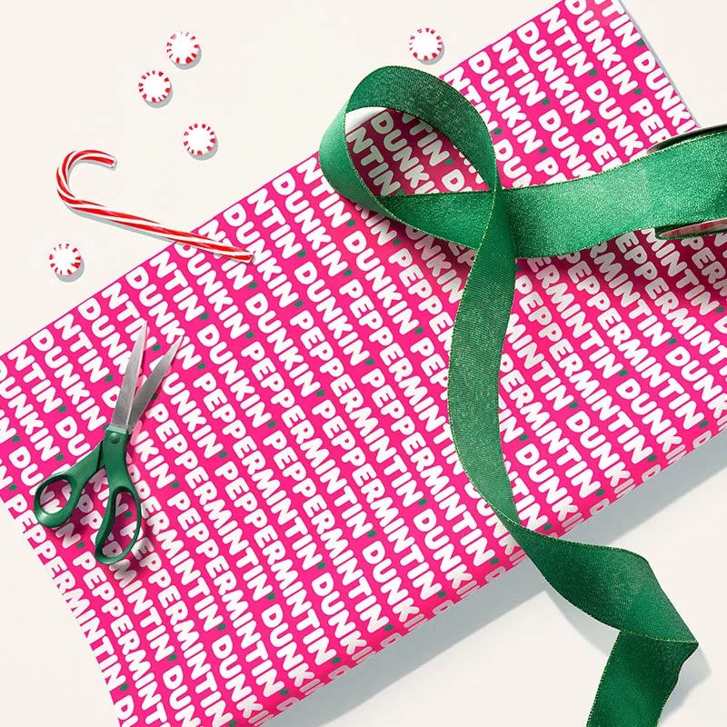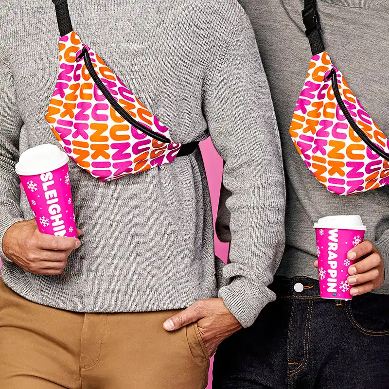 In addition to the celeb-favorite goodies, Dunkin’s holiday collection, which consists of over two dozen items, also includes peppermint-scented wrapping paper, pint glasses and Dunkin’ logo-patterned fanny pack. Each piece in the collection will only be available while supplies last.