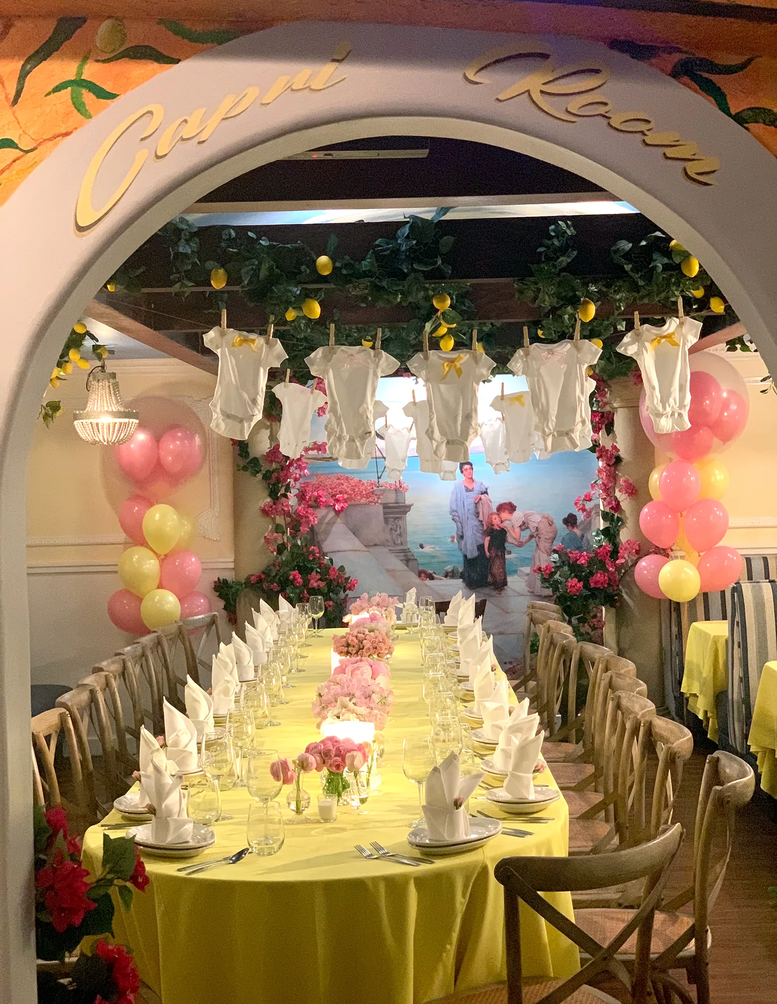 “Tonight @kylerichards18 and I host @teddimellencamp’s baby shower at the brand new Capri room in @bucadibeppo 🍋🇮🇹,” the swimsuit designer wrote on Wednesday via Instagram. “It was a proud moment for me to see my vision for this room come alive and it was so fun to decorate the room specifically for the shower! 👶🏼 🎀 “