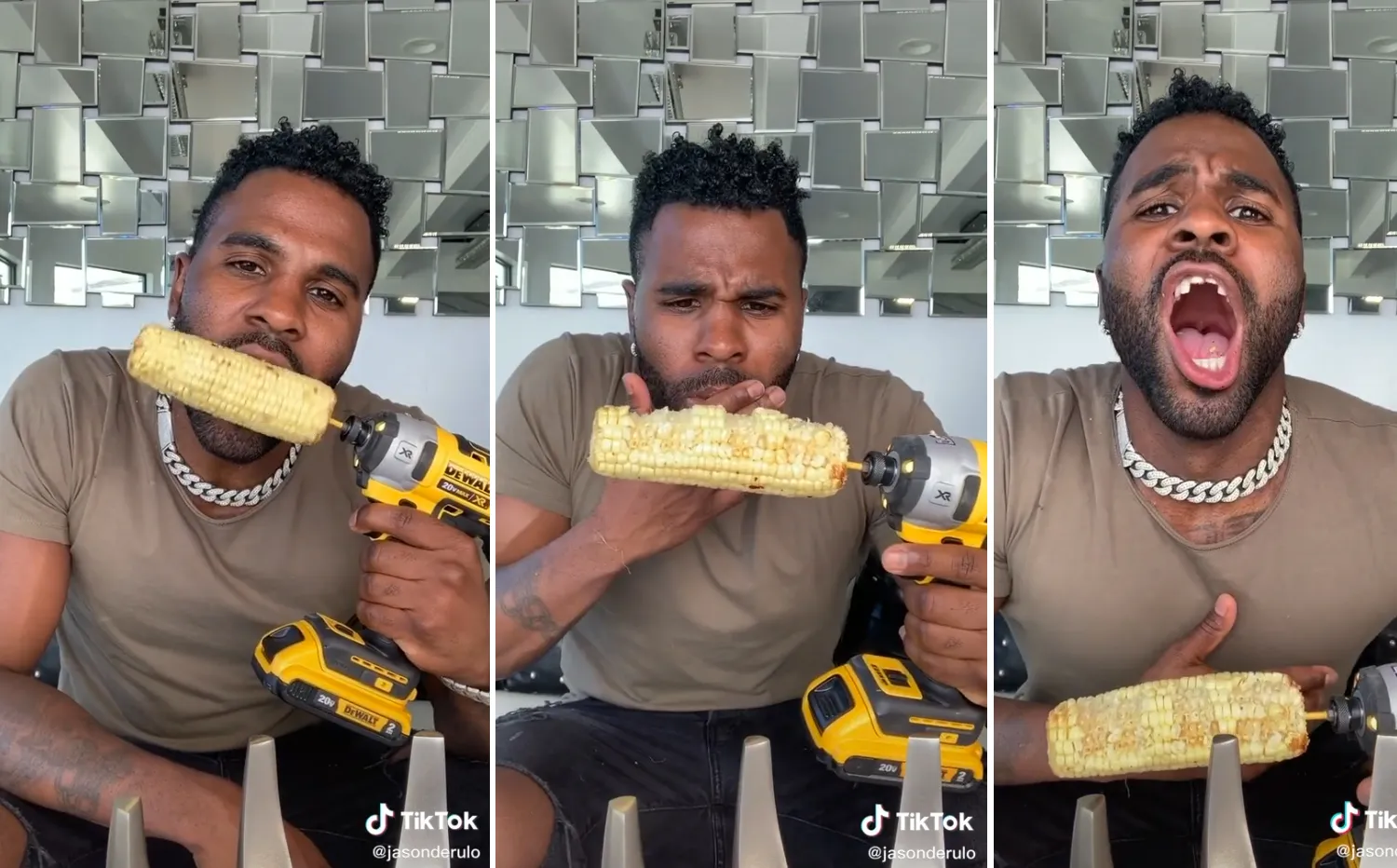 “Hey, have y’all seen this? I’ve always wanted to try it. Life hack,” Derulo said as he held a power drill with a piece of corn on the end of it. As the drill began to rotate at an increasing speed, the MTV Video Music Award nominee struggled to keep up and yelled out in pain after a few seconds.