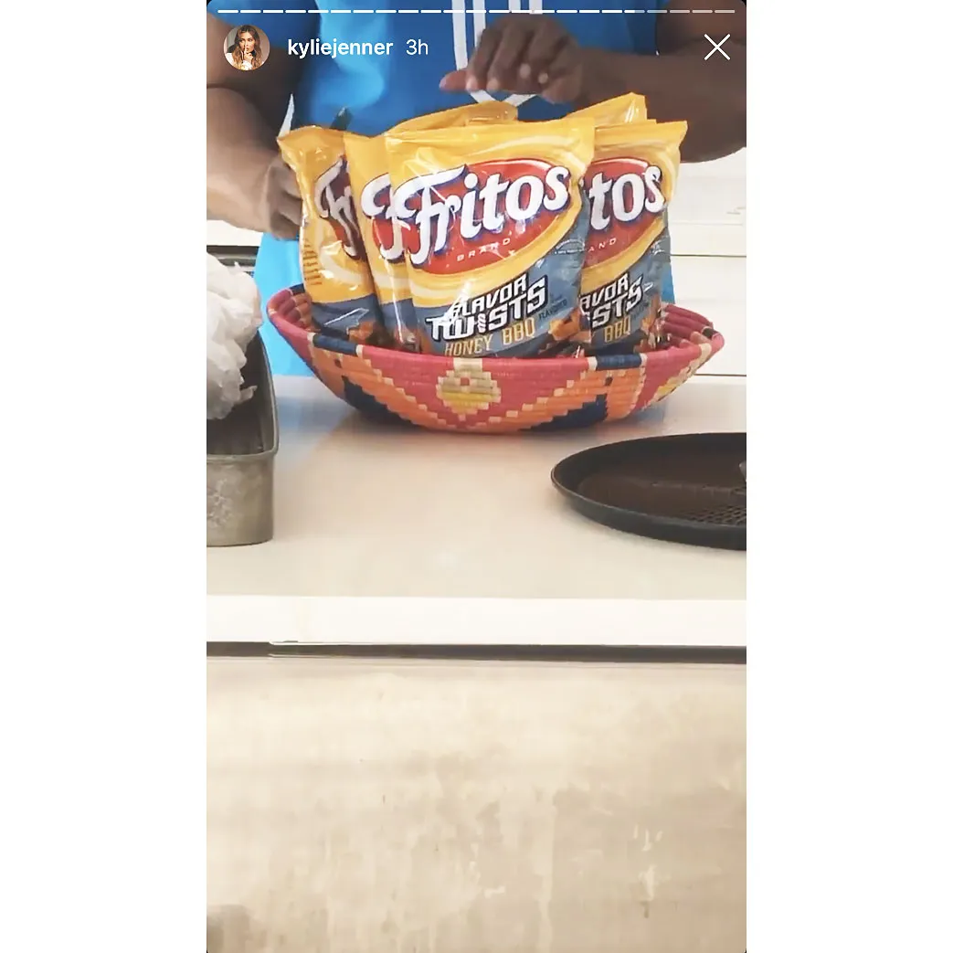 “I will have to admit that I am a big snacker,” she explained at the time, noting that barbecue Lays, “extra cheesy Goldfish” and chili cheese Fritos are some of her favorites. While in the Bahamas, Jenner switched things up a bit and enjoyed honey BBQ Fritos instead.